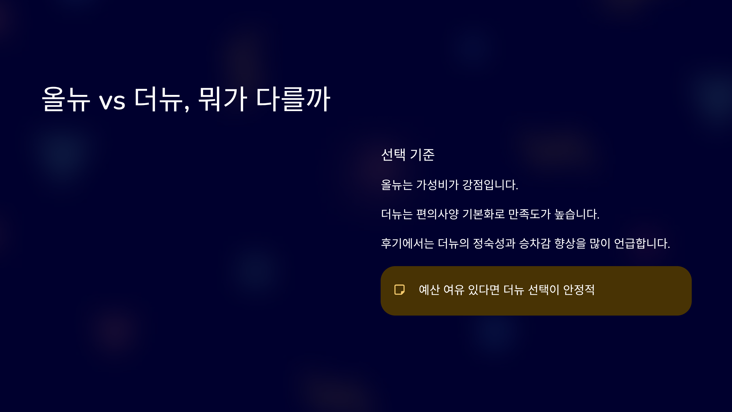 예산 여유 있다면 더뉴 선택이 안정적입니다.
