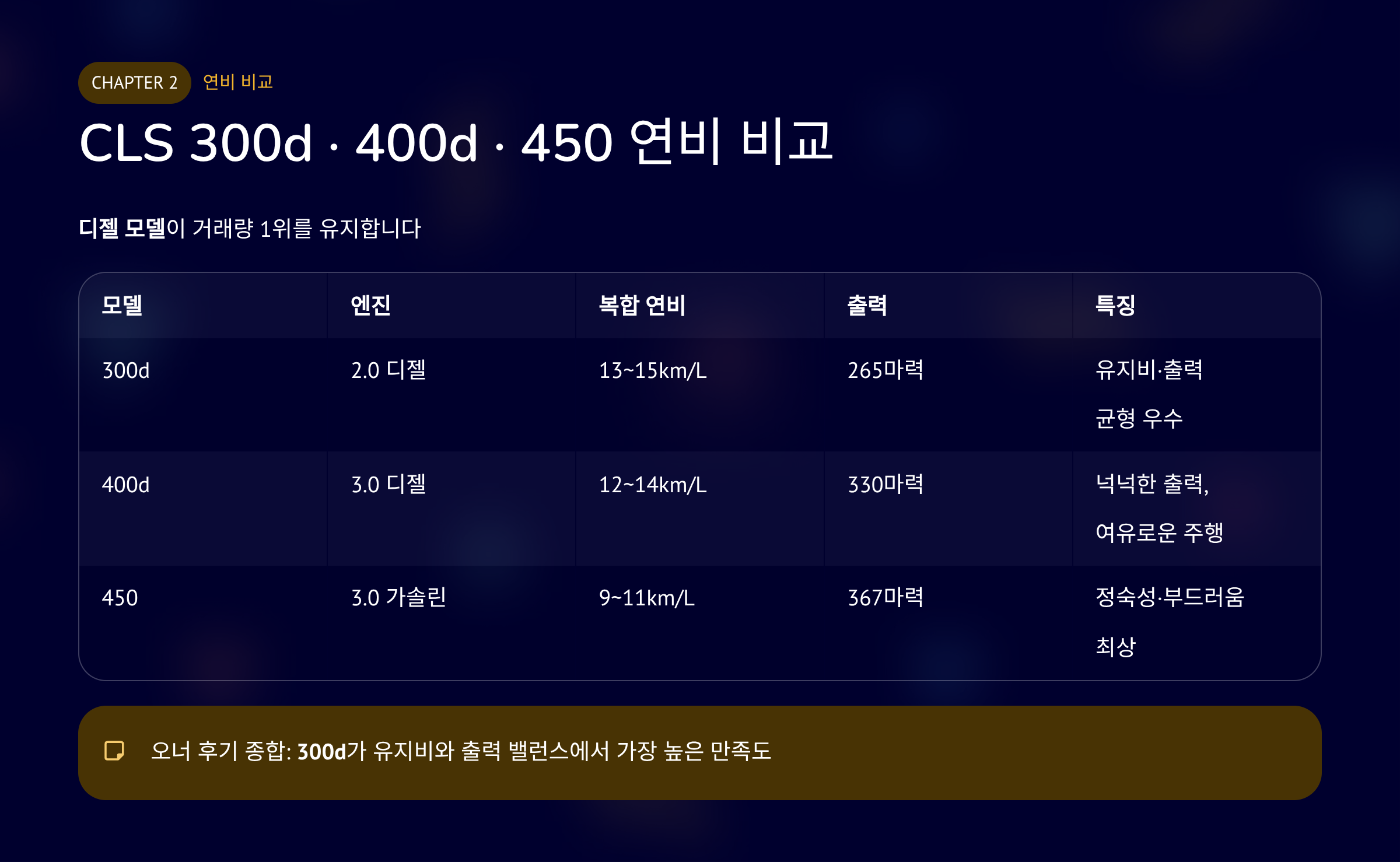 CLS는 디자인과 체급에서 독보적인 포지션입니다.