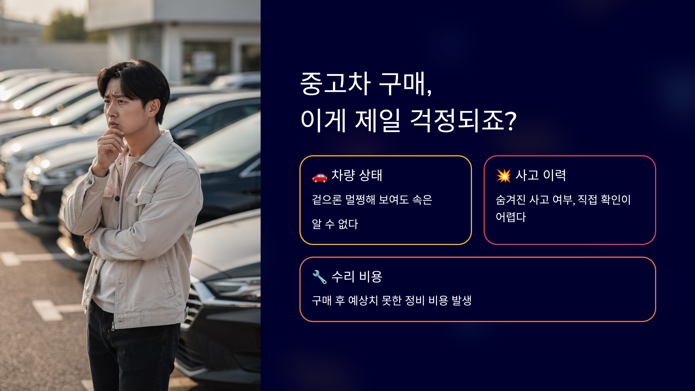 중고차를 살 때 가장 고민되는 부분은 무엇일까요.