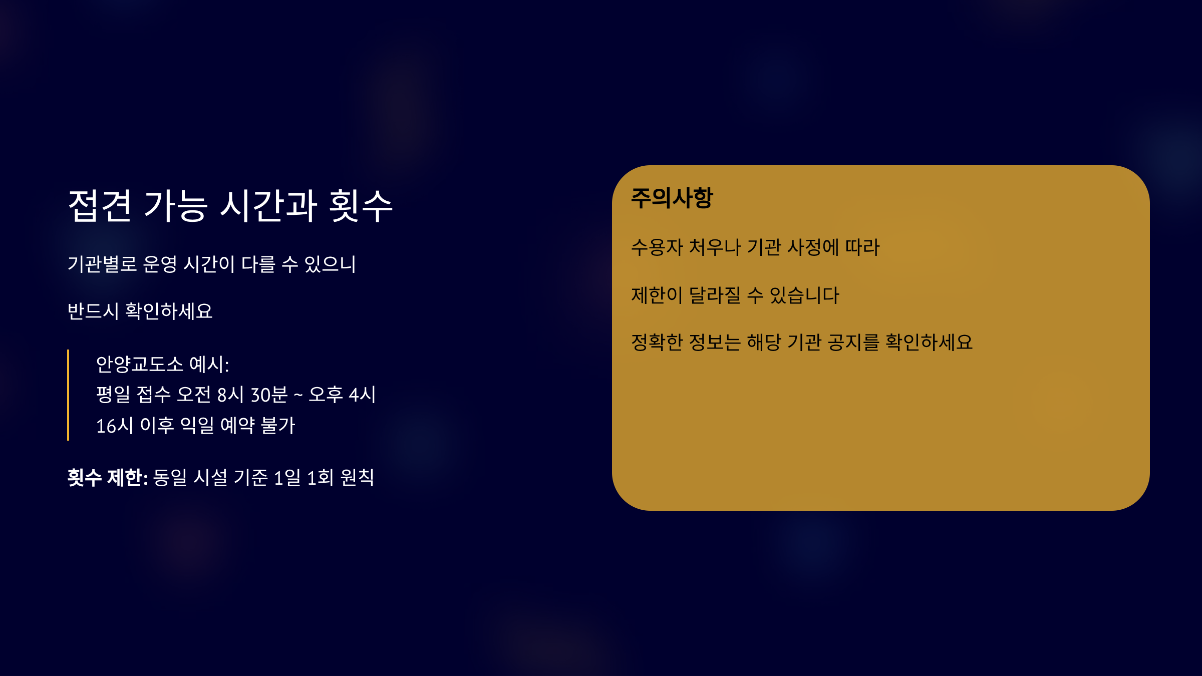 마지막으로, 기관마다 운영 시간이 다를 수 있으니 안내 페이지 확인은 필수입니다.
