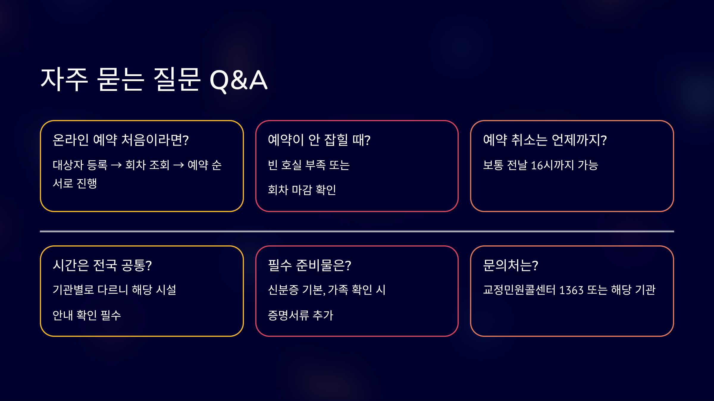 온라인 예약, 시간 제한, 준비물, 사전등록이 결국 핵심이더군요.