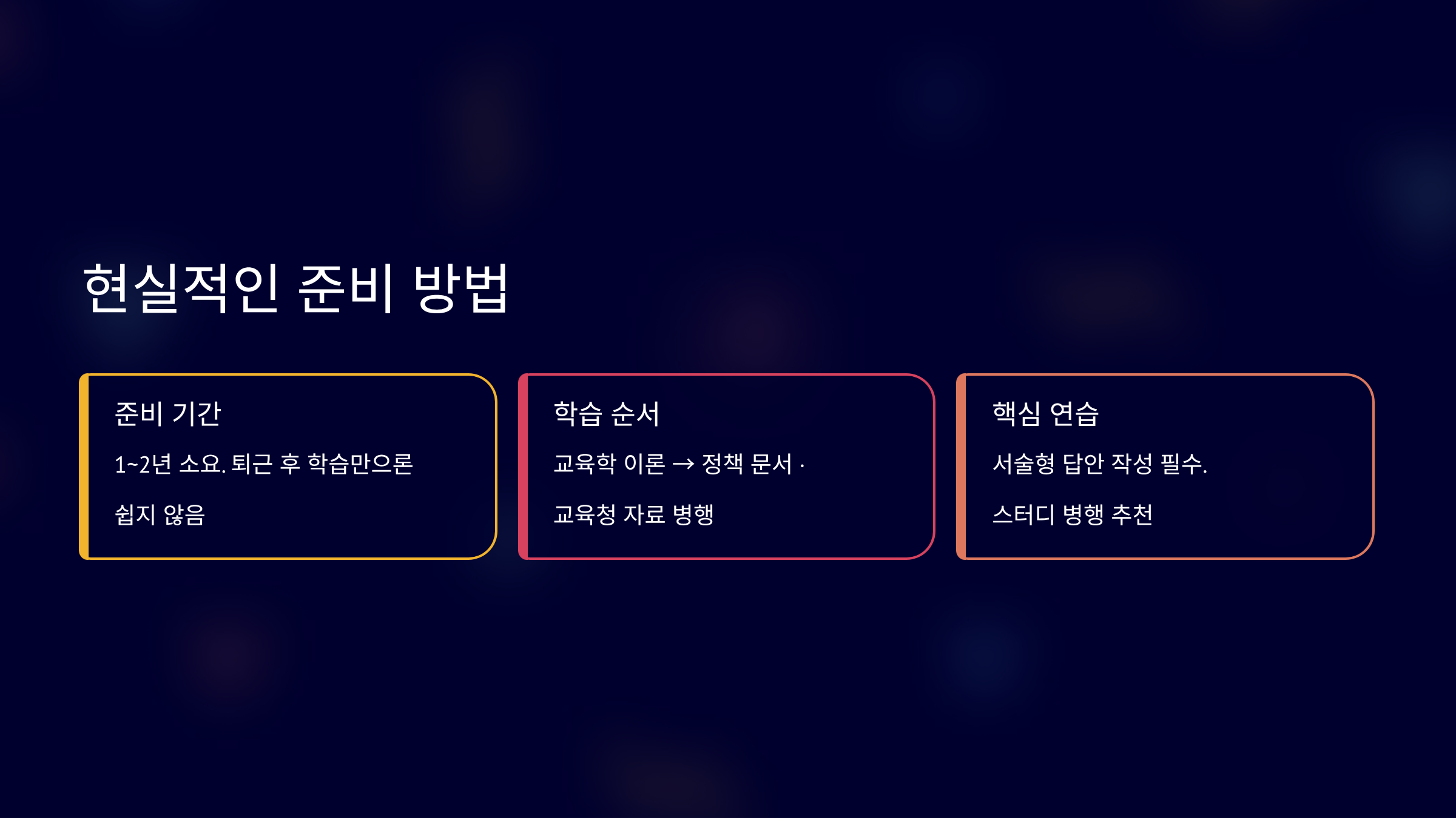 교육학 이론 정리부터 시작하는 경우가 많습니다.