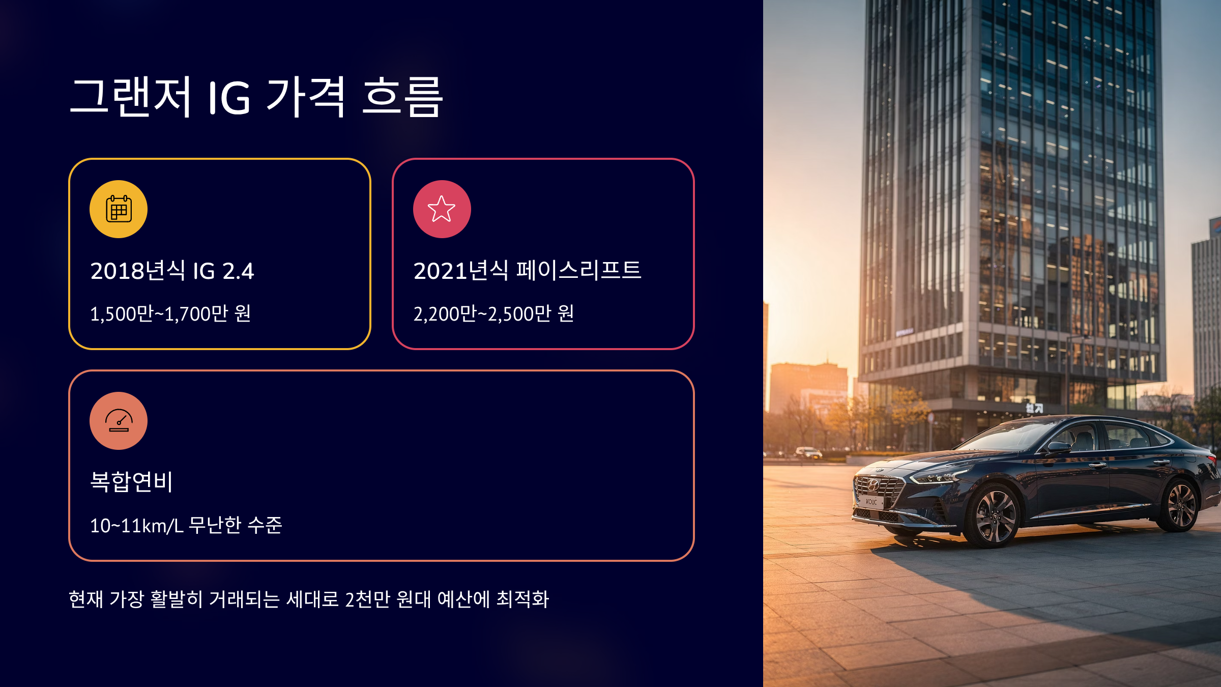 - 2020~2022년식 IG 페이스리프트 1,900만~2,700만 원