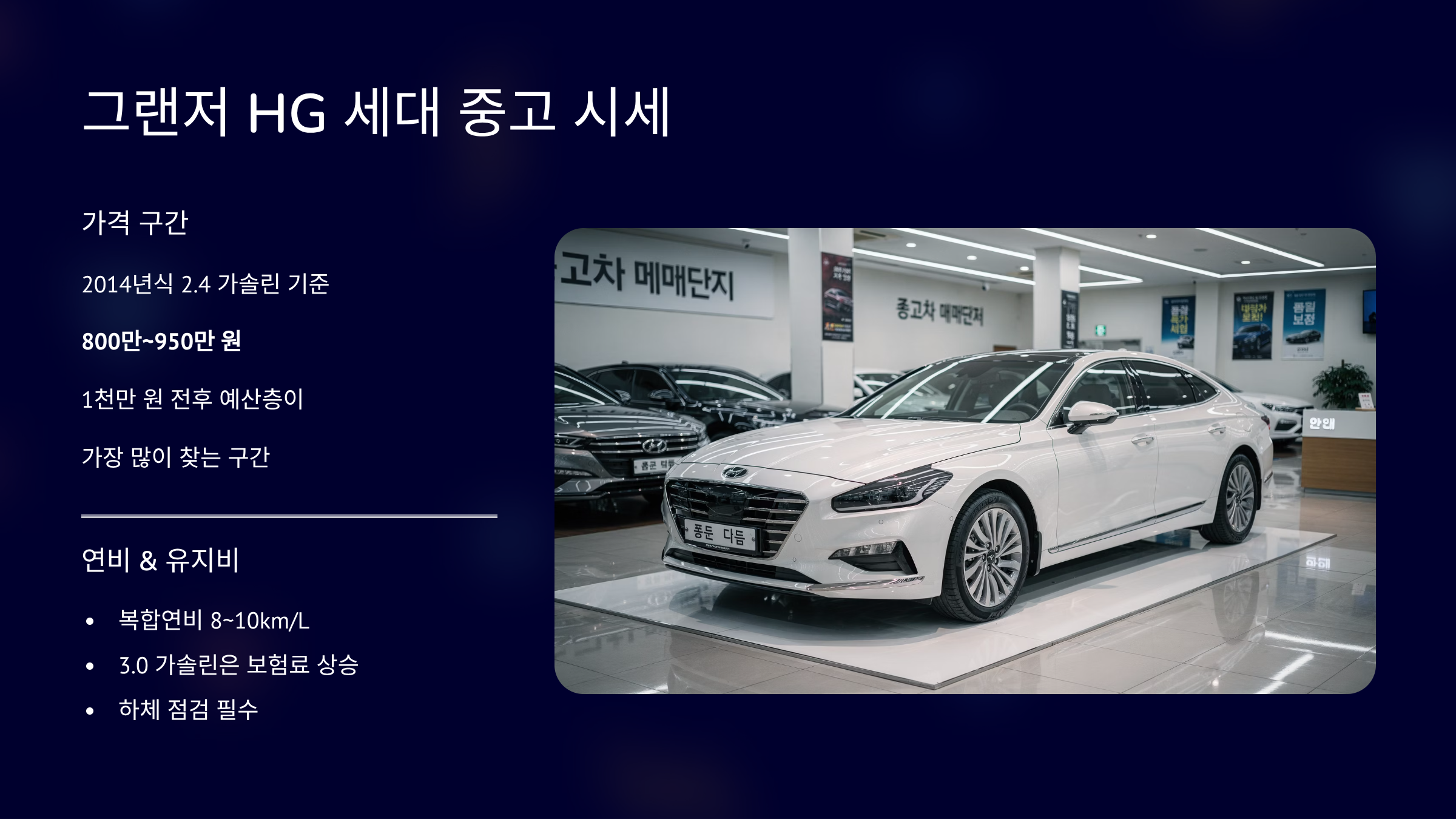 1천만 원 초반이라면 HG 후기형이 가성비 구간으로 평가됩니다.