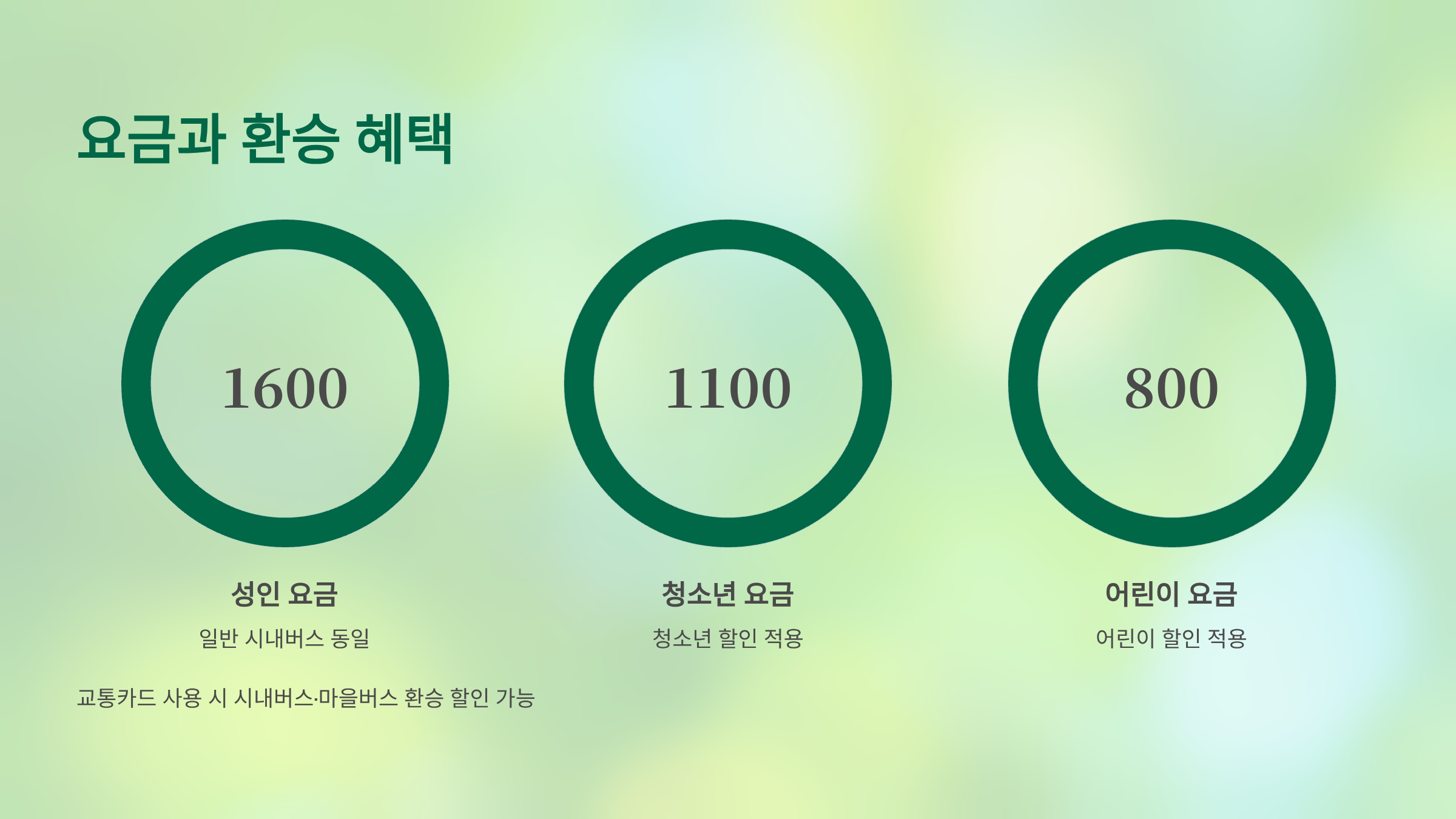 교통카드를 사용하면 일반 시내버스·마을버스와 환승 할인도 적용돼요.