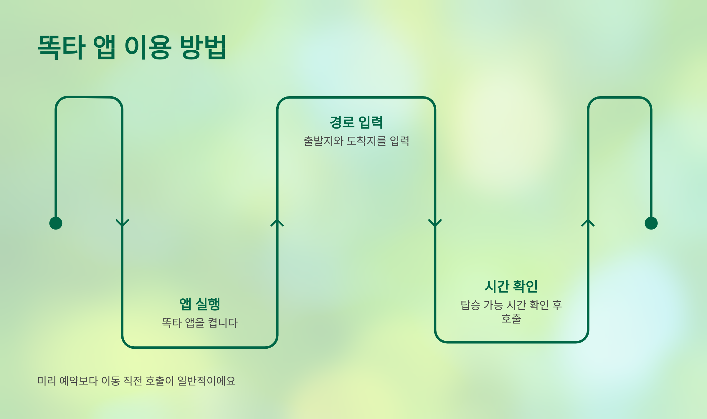 김포 똑버스는 ‘똑타’ 어플을 통해 호출합니다. 이용 방법은 비교적 단순해요.