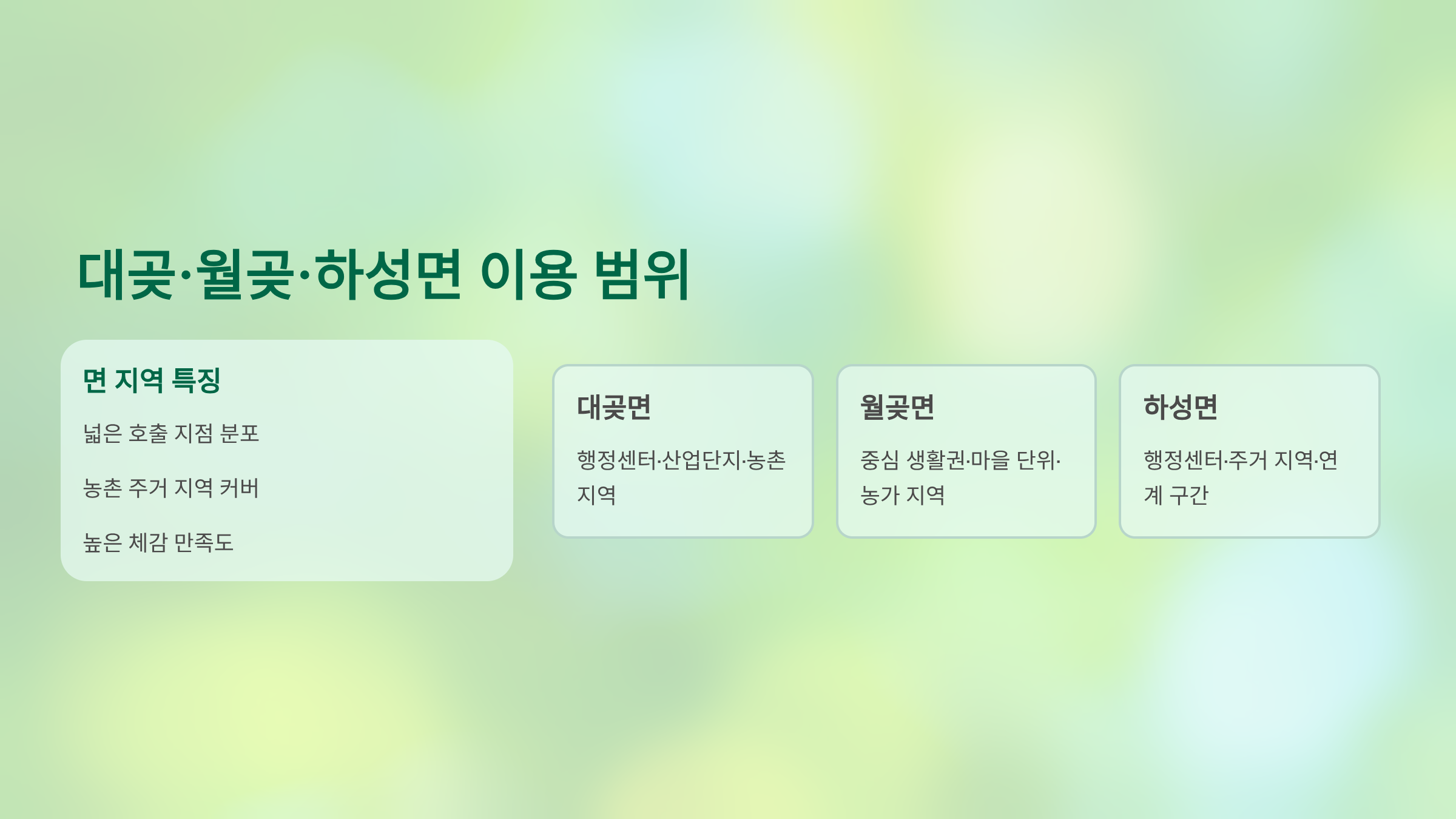 면 지역은 호출 지점이 넓게 분포돼 있어 이동 체감 만족도가 높은 편이에요.