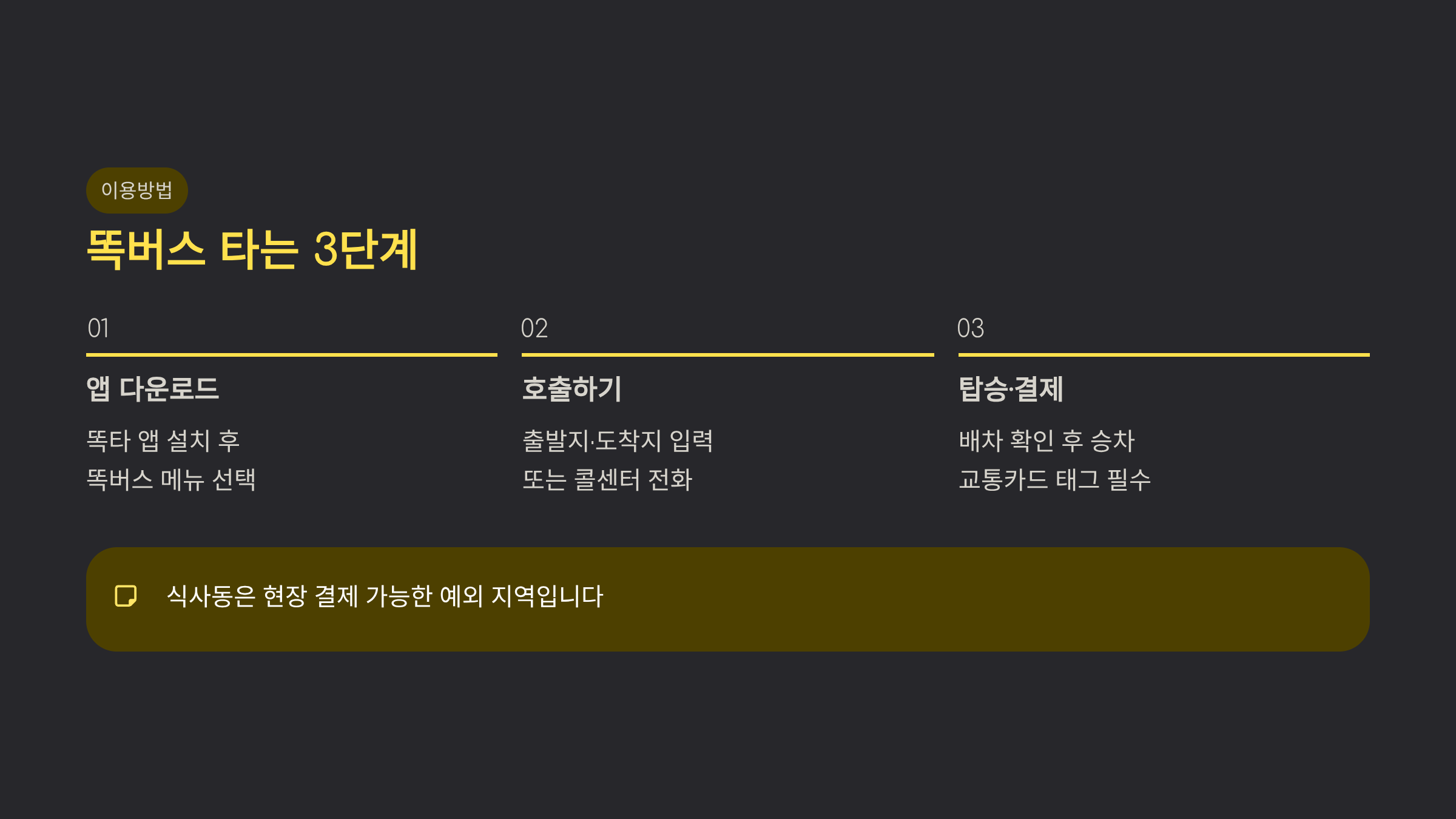 똑버스는 현장 대기 탑승이 아니라, 호출 기반이 기본입니다.