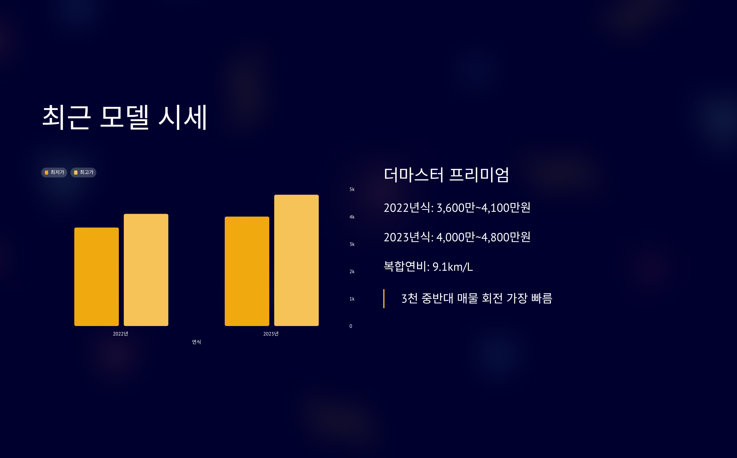 - 2023년식 더마스터 4WD : 4,000만 ~ 4,800만원 / 9.1km/L