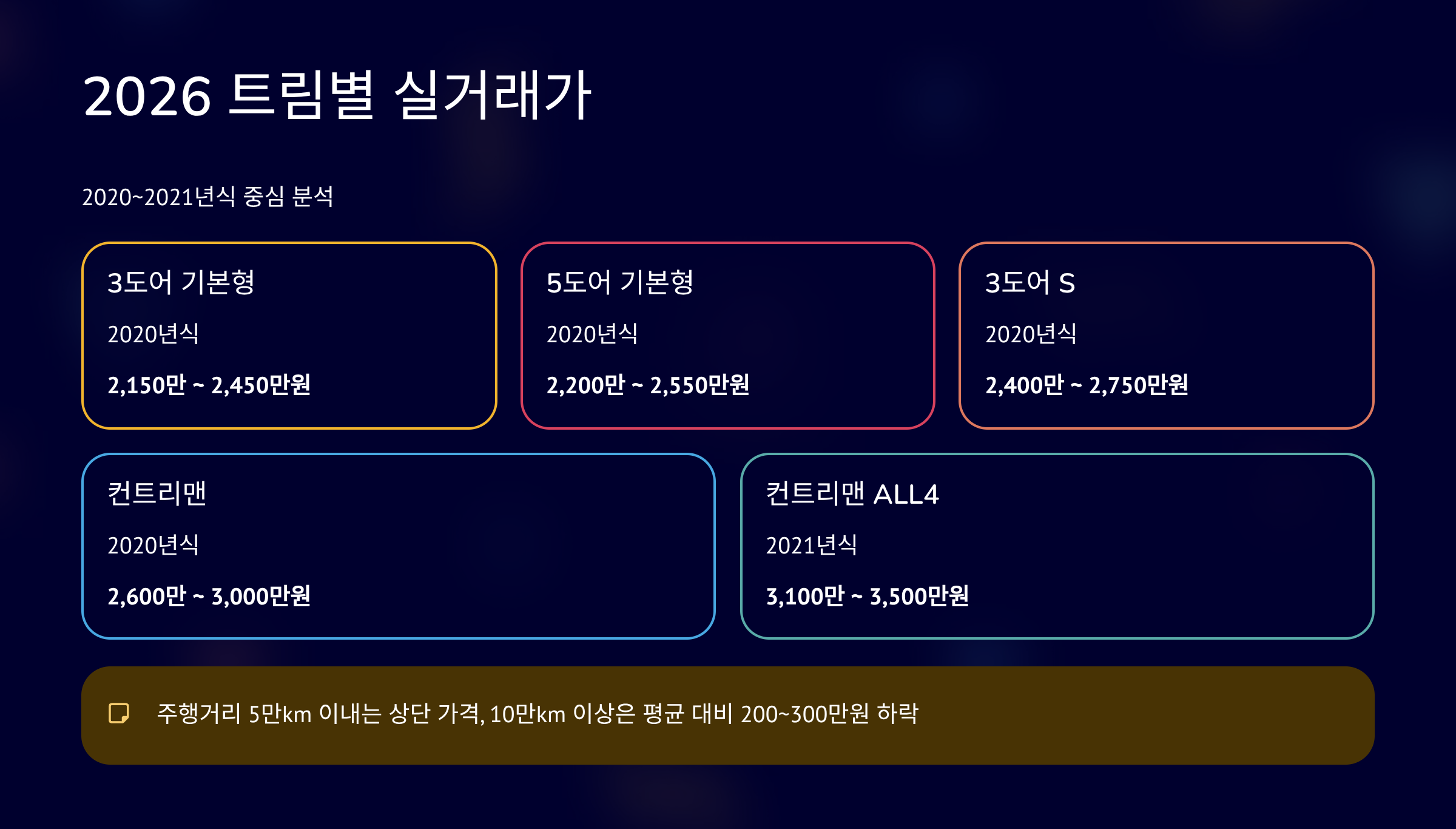 - 2020년식 3도어 S : 2,400만 ~ 2,750만원