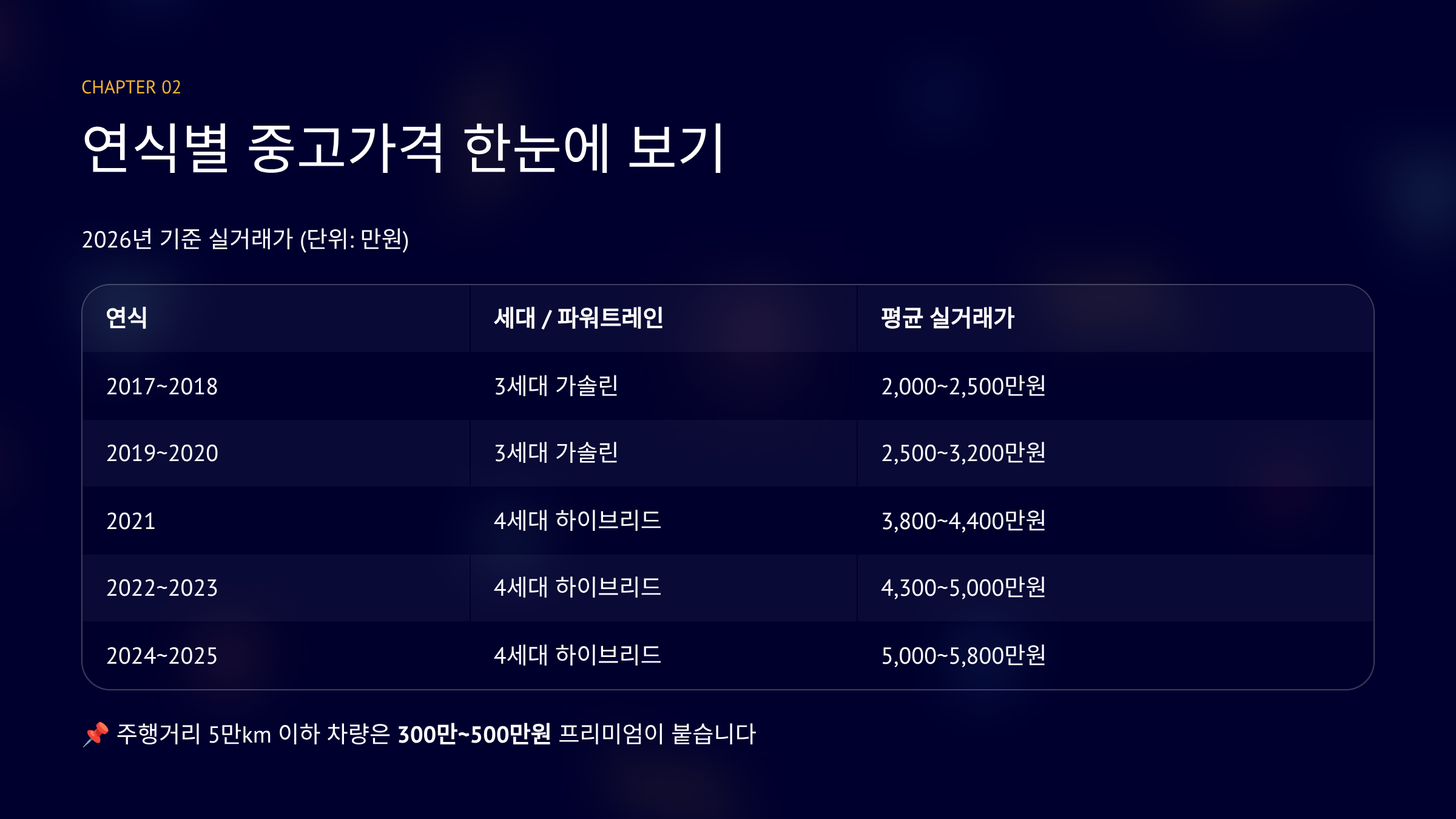 - 2024~2025년식 4세대 하이브리드 : 5,000만~5,800만원