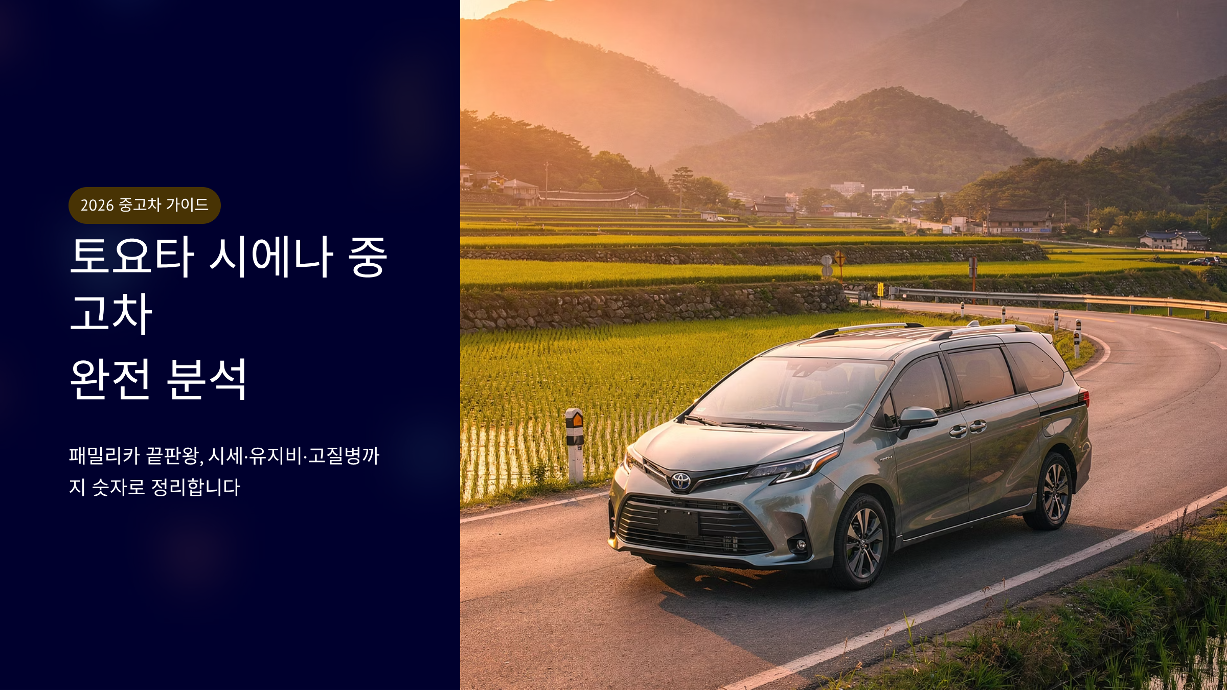 그래서 시에나 중고가격을 찾는 분들은 시세보다 유지비와 고질병을 먼저 확인합니다. 2026년 기준 연식·연비·가격을 숫자로 정리해보겠습니다. 실사용 경험도 함께 풀어보겠습니다.
