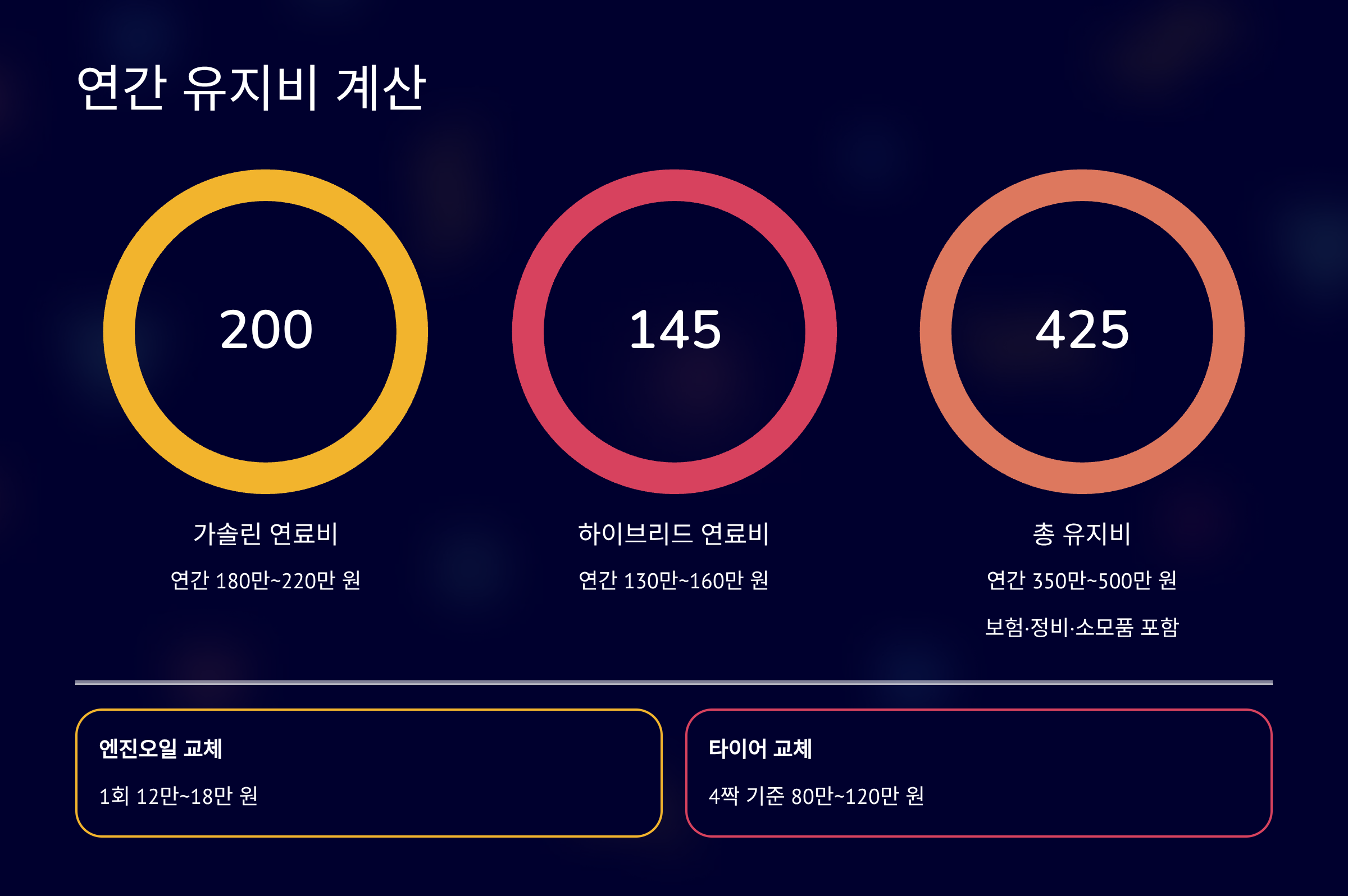 연간 유지비는 평균 350만~500만 원 선입니다.