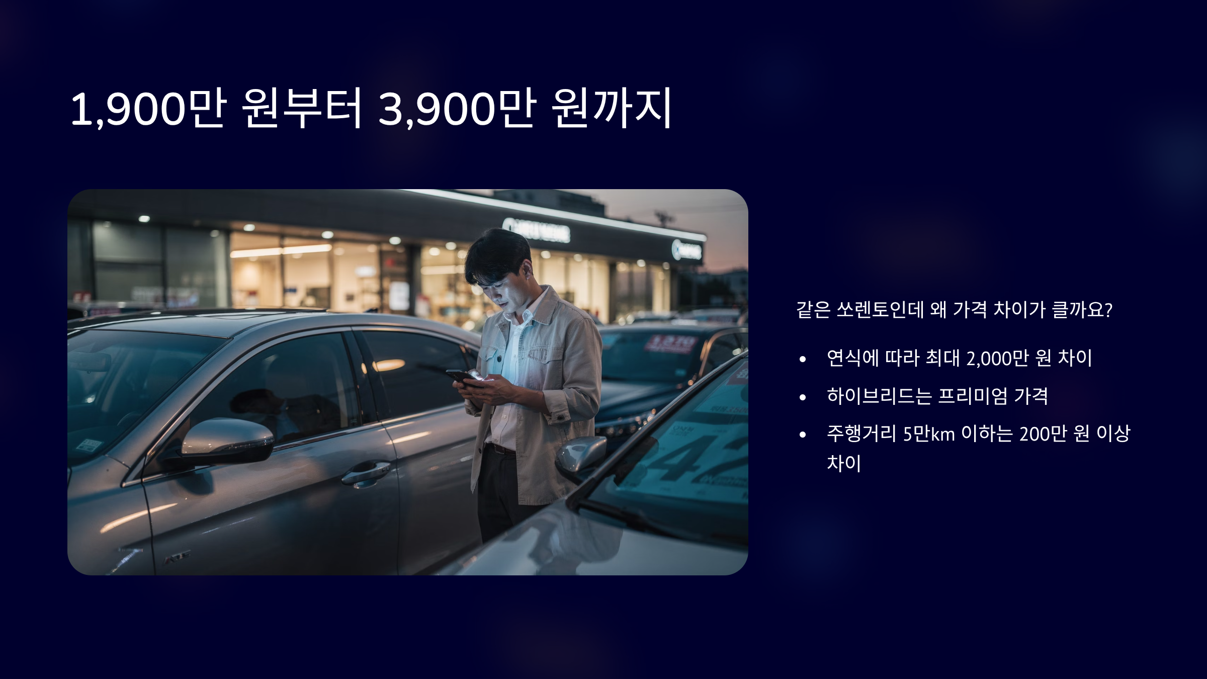 패밀리 SUV를 고민하다 보면 결국 쏘렌토 시세를 확인하게 됩니다. 그런데 막상 중고차 가격을 보면 1,900만 원대부터 3,900만 원대까지 폭이 꽤 큽니다. 같은 차인데 왜 이렇게 차이가 나는지 궁금하셨을 겁니다. 2026년 현재는 연식과 파워트레인에 따라 가격 격차가 뚜렷합니다. 특히 하이브리드는 프리미엄이 붙는 흐름입니다. 지금부터 연식별 비교, 연비, 유지비, 실제 후기까지 구체적으로 정리해드리겠습니다.