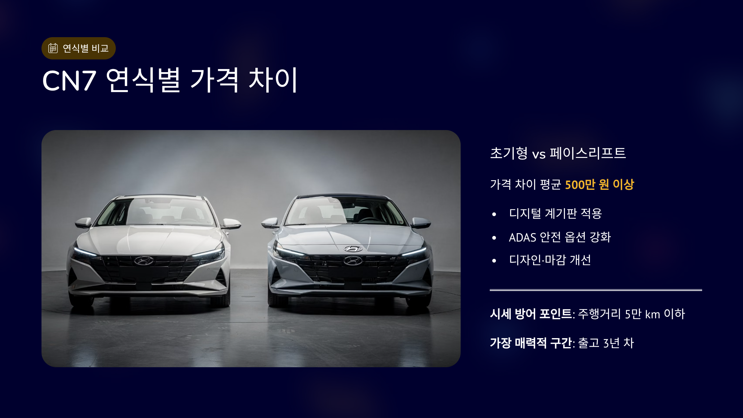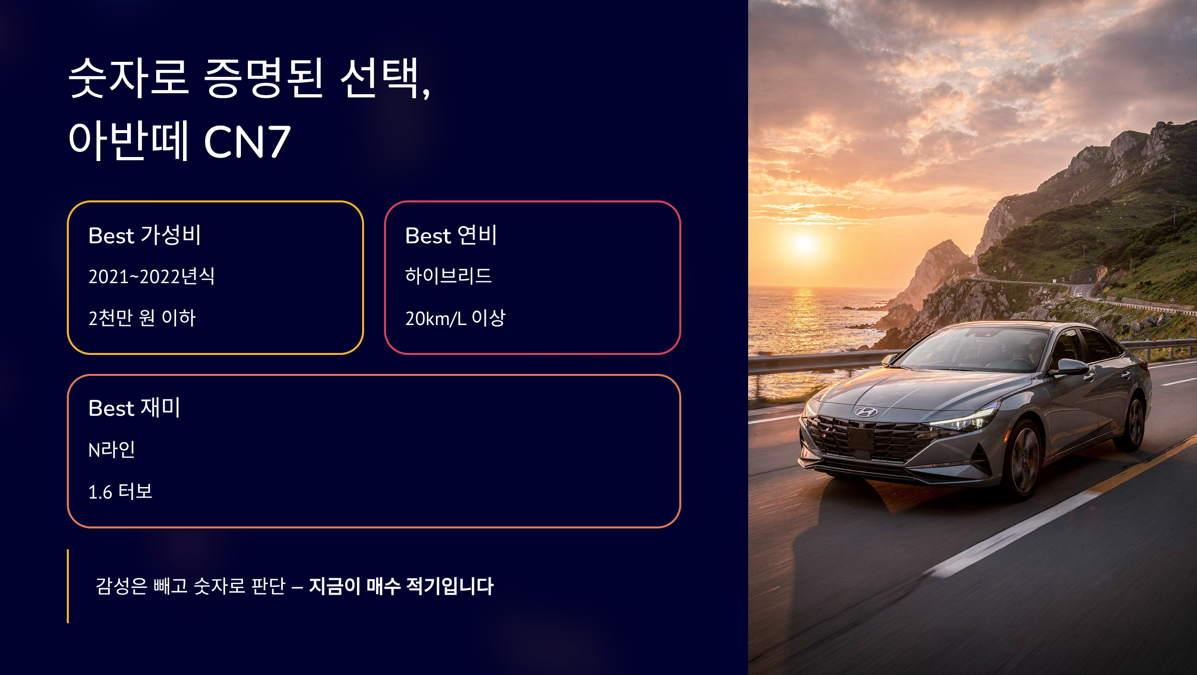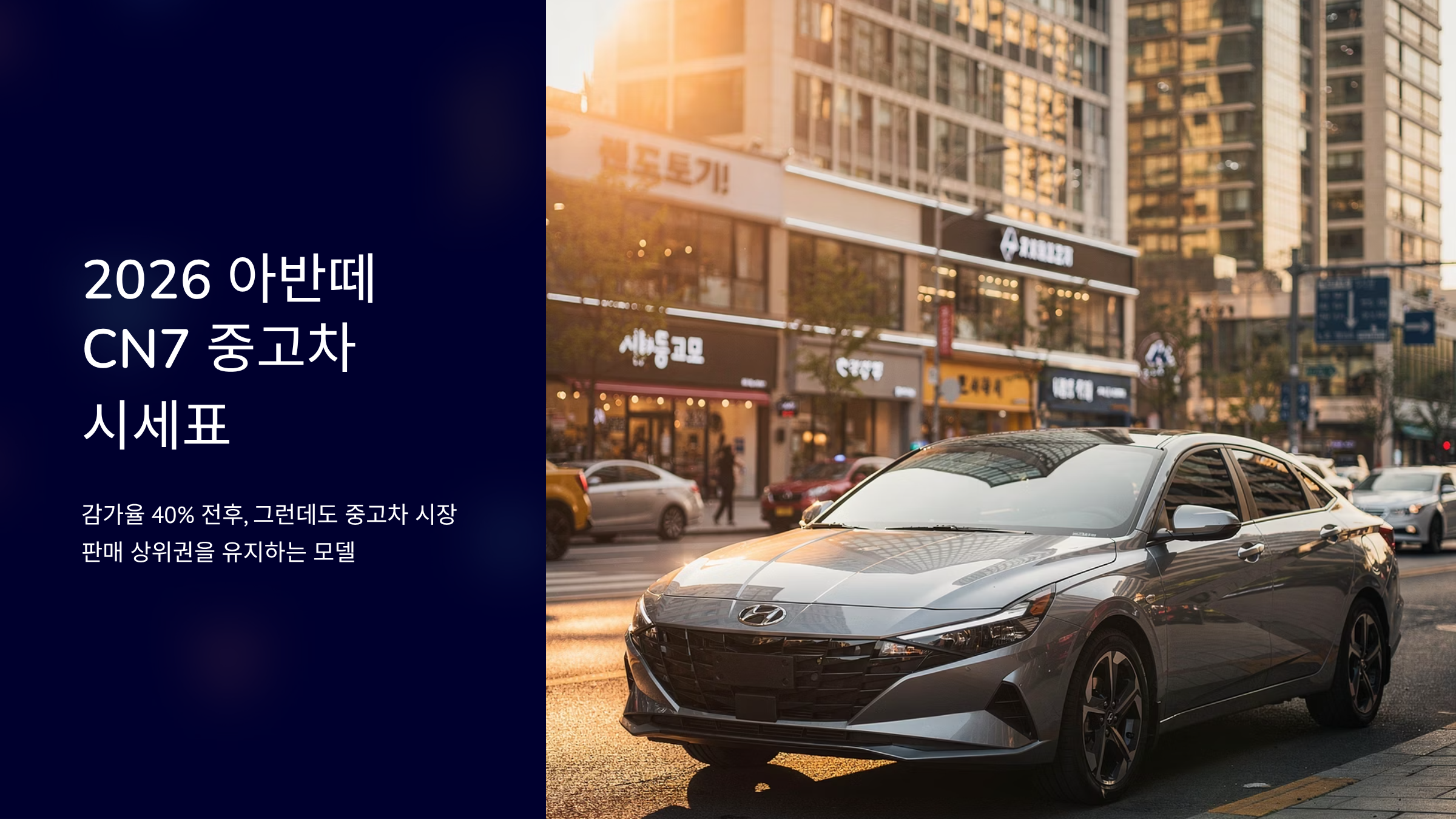 감가율 40% 전후, 그런데도 중고차 시장 판매 상위권을 유지하는 모델이 있습니다. 아반떼 CN7은 출고 3~4년 차에 가격이 크게 빠지면서도 거래량은 꾸준한 차량입니다.
