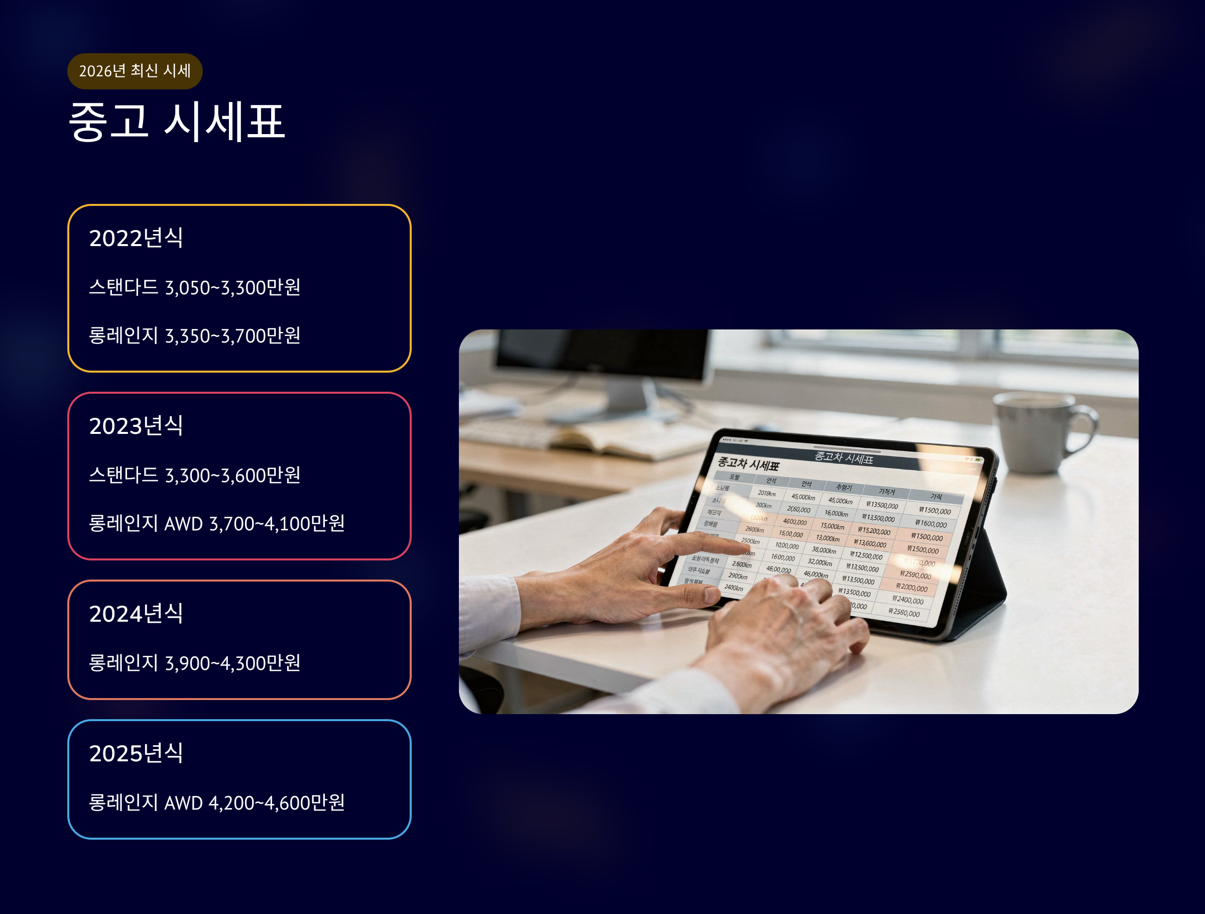 - 2022년식 롱레인지 : 3,350만~3,700만원