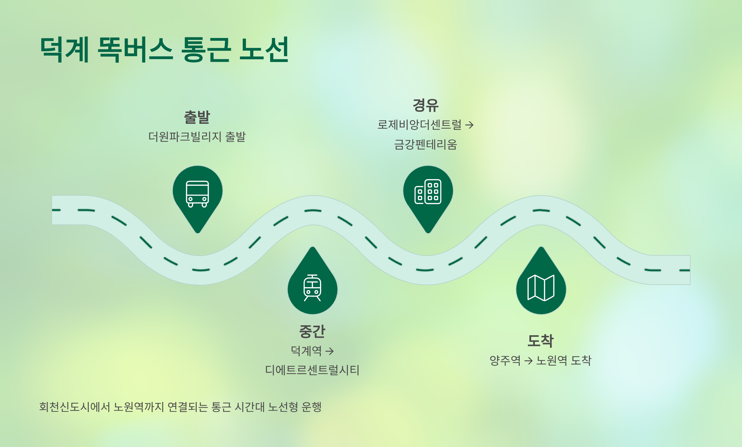 양주에서는 회천·덕계 생활권 통근 수요를 위해 회천신도시에서 덕계역·양주역을 거쳐 서울 노원역까지 이어지는 노선형 안내가 공개된 바 있고, 이 구간은 정류장 목록이 명확히 정리되어 있습니다.
