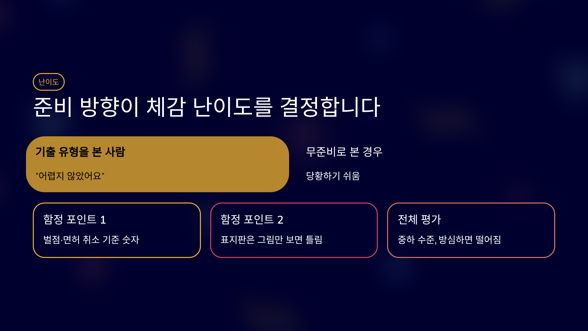 난이도는 준비 방향에 따라 체감이 갈립니다.