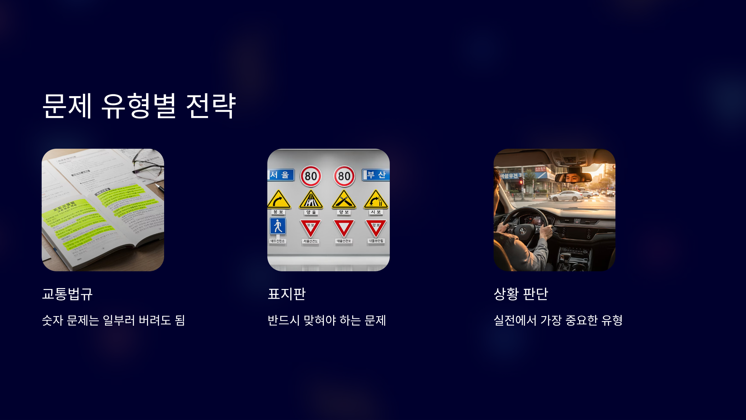반대로 표지판과 상황 판단 문제는 반드시 맞혀야 합니다.