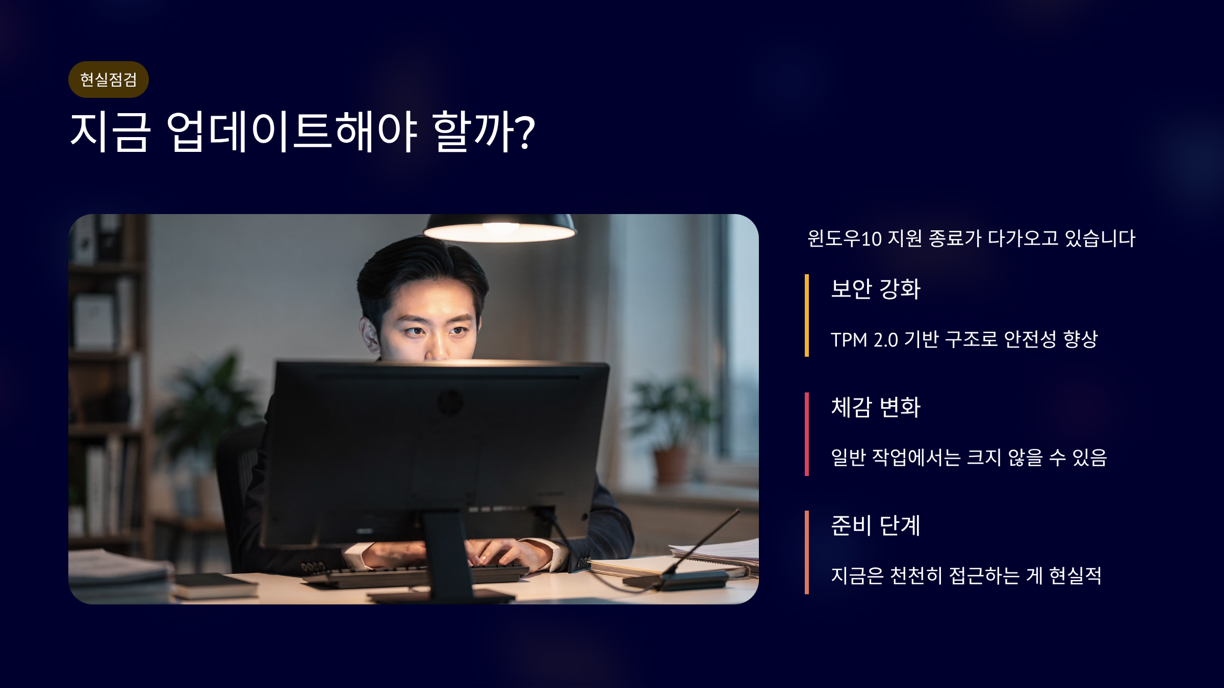 다만 윈도우10 지원 종료 일정이 점점 가까워지고 있습니다.