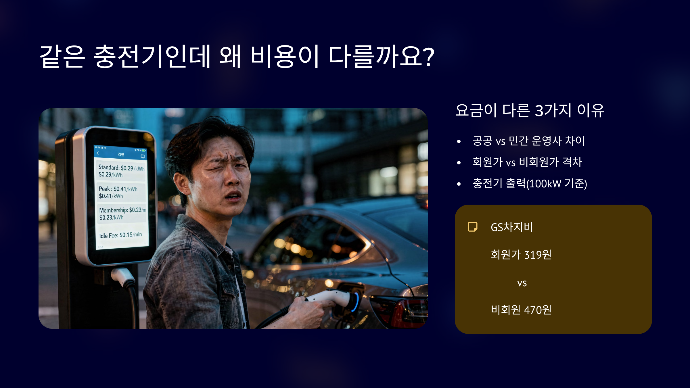 그 순간부터 사람은 깨닫습니다. 충전은 위치 싸움이 아니라 요금 싸움이구나.