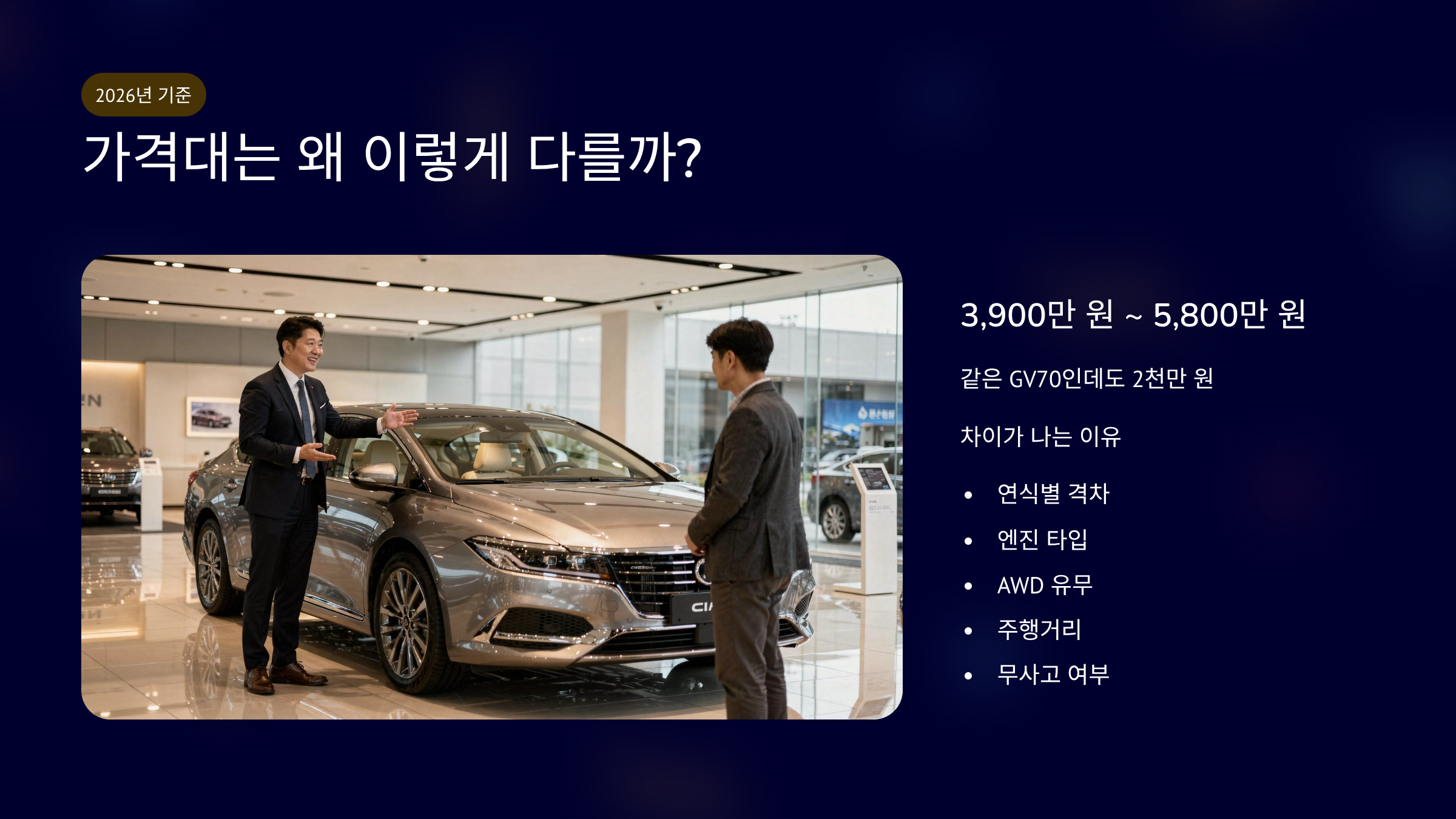 제네시스 gv70 중고차 가격은 연식과 엔진 차이가 핵심입니다.