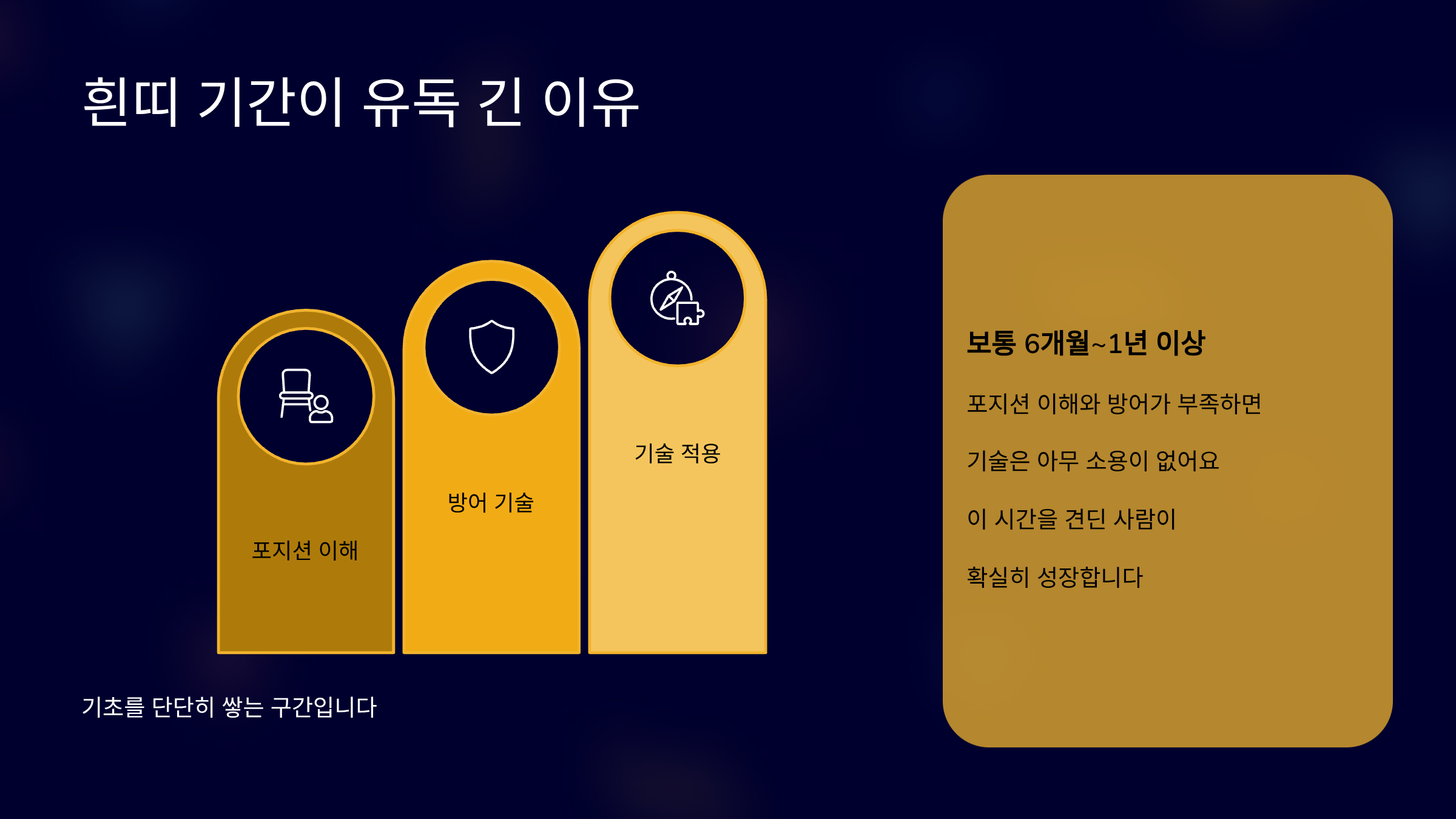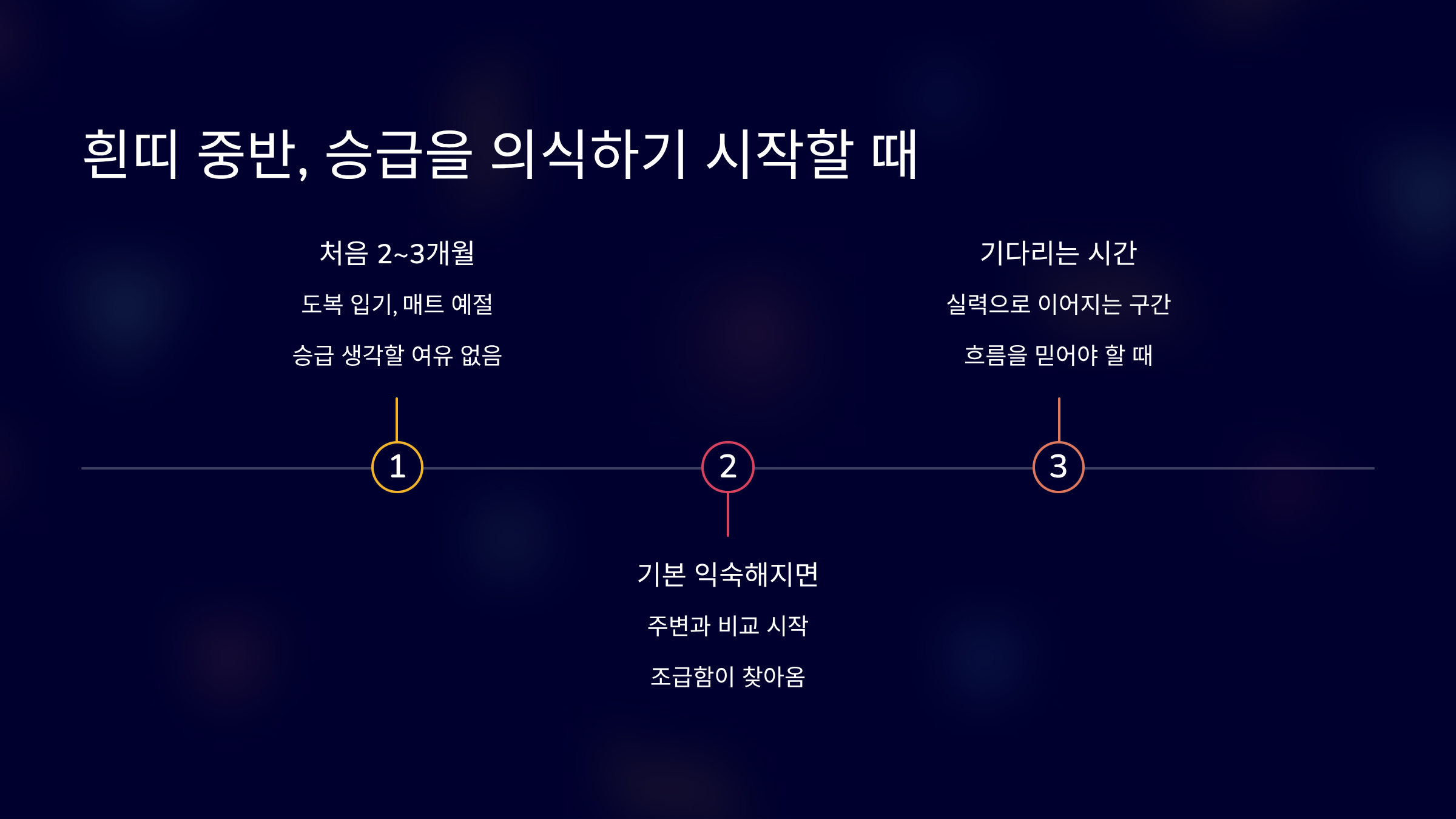흰띠 기간이 길게 느껴진다면 정상이에요.