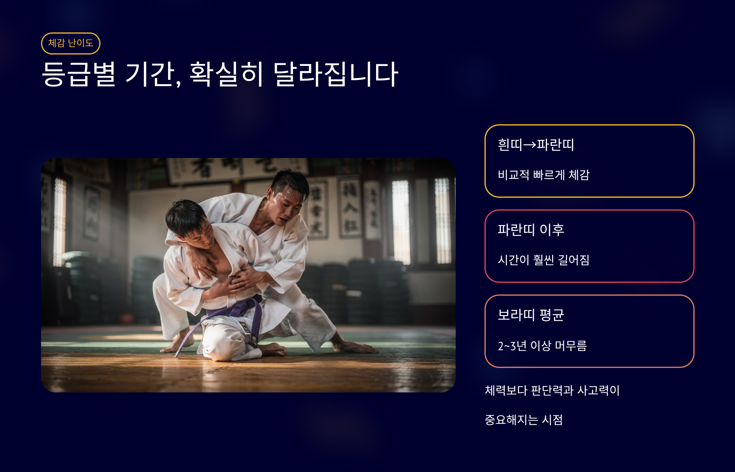 벨트가 올라갈수록 체감 난이도는 확실히 달라집니다.