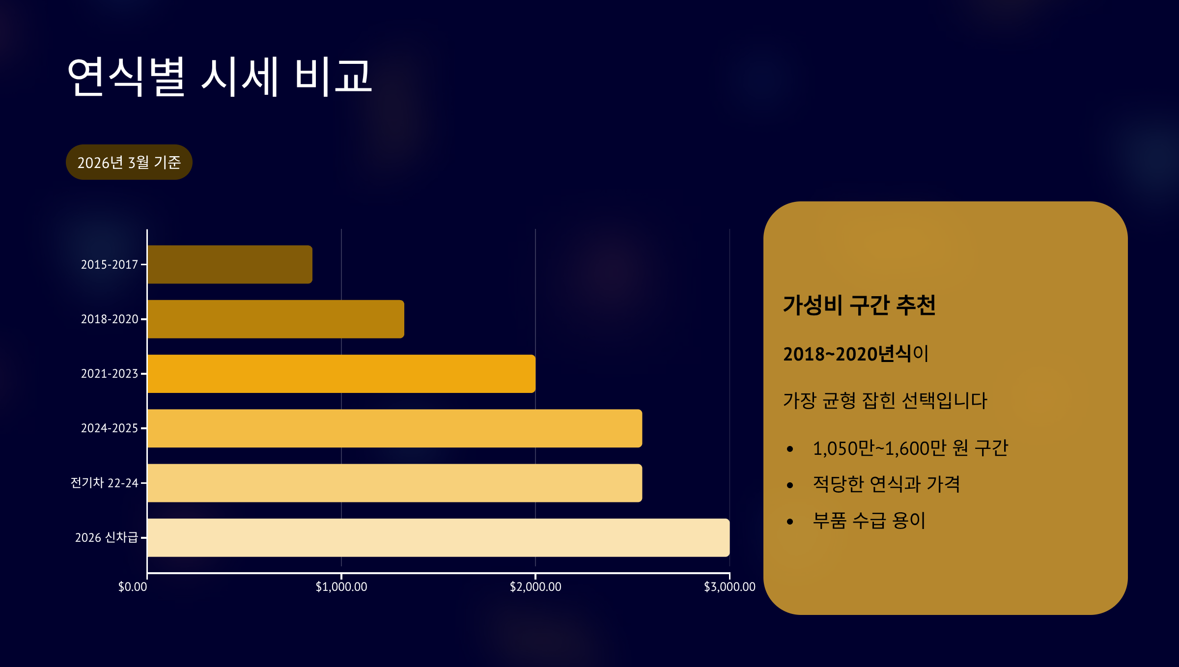 2018~2020년식은 가성비 구간으로 평가됩니다.