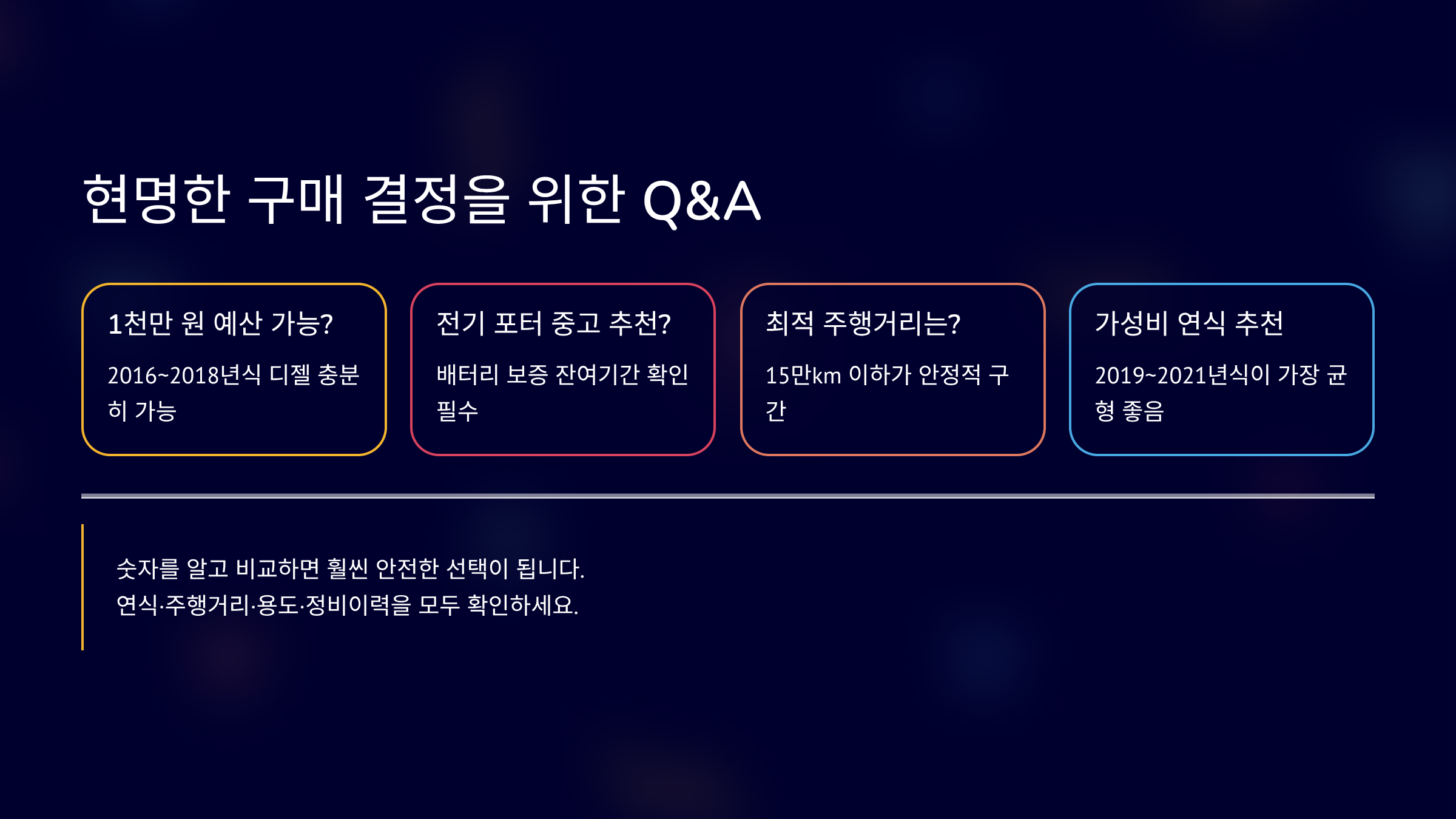 실구매 후기에서도 “정비 이력 확인이 가장 중요하다”고 강조합니다.