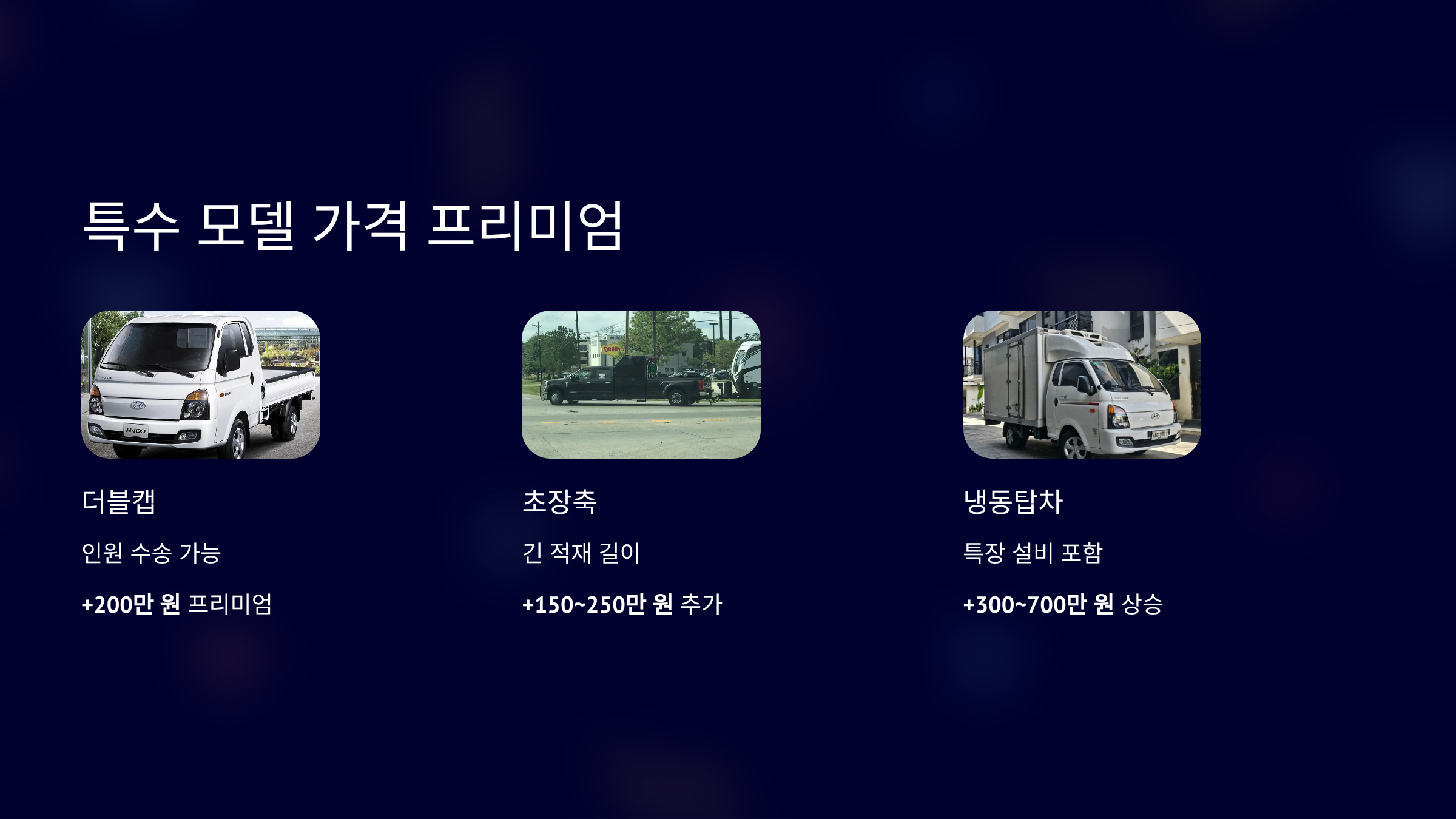 적재 구조에 따라 평균 150만~400만 원 차이가 납니다.