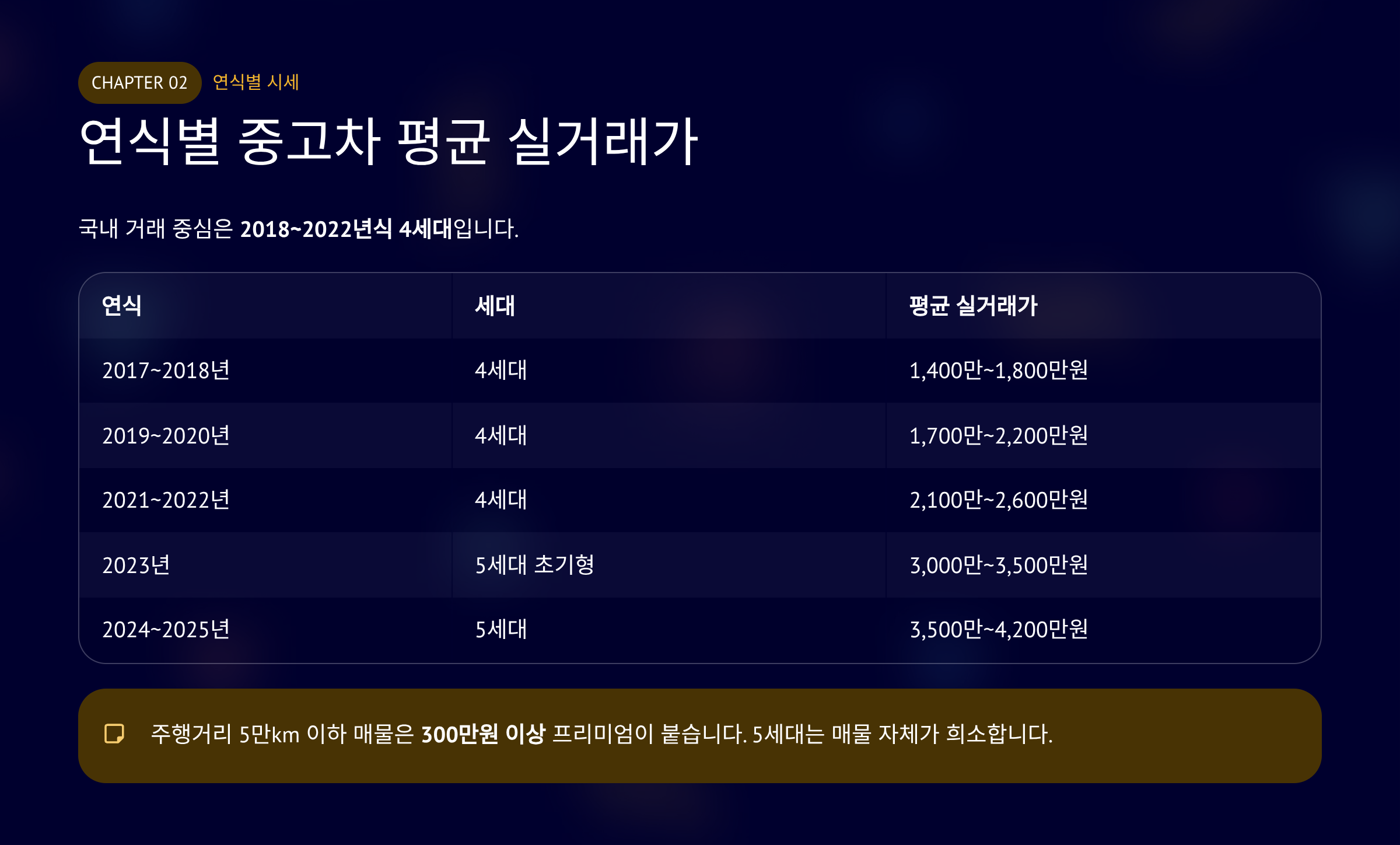 - 2024~2025년식 5세대 : 3,500만~4,200만원