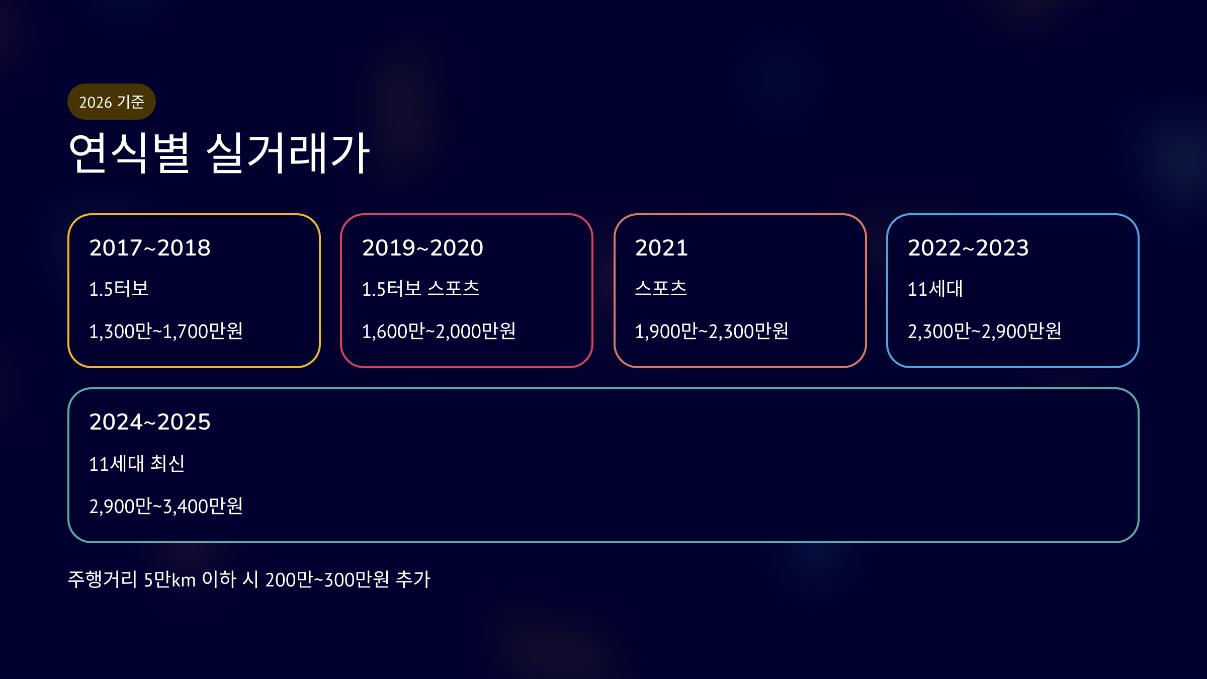 2026년 기준 실제 거래가와 연식·연비·가격을 구체적인 수치로 정리해보겠습니다.