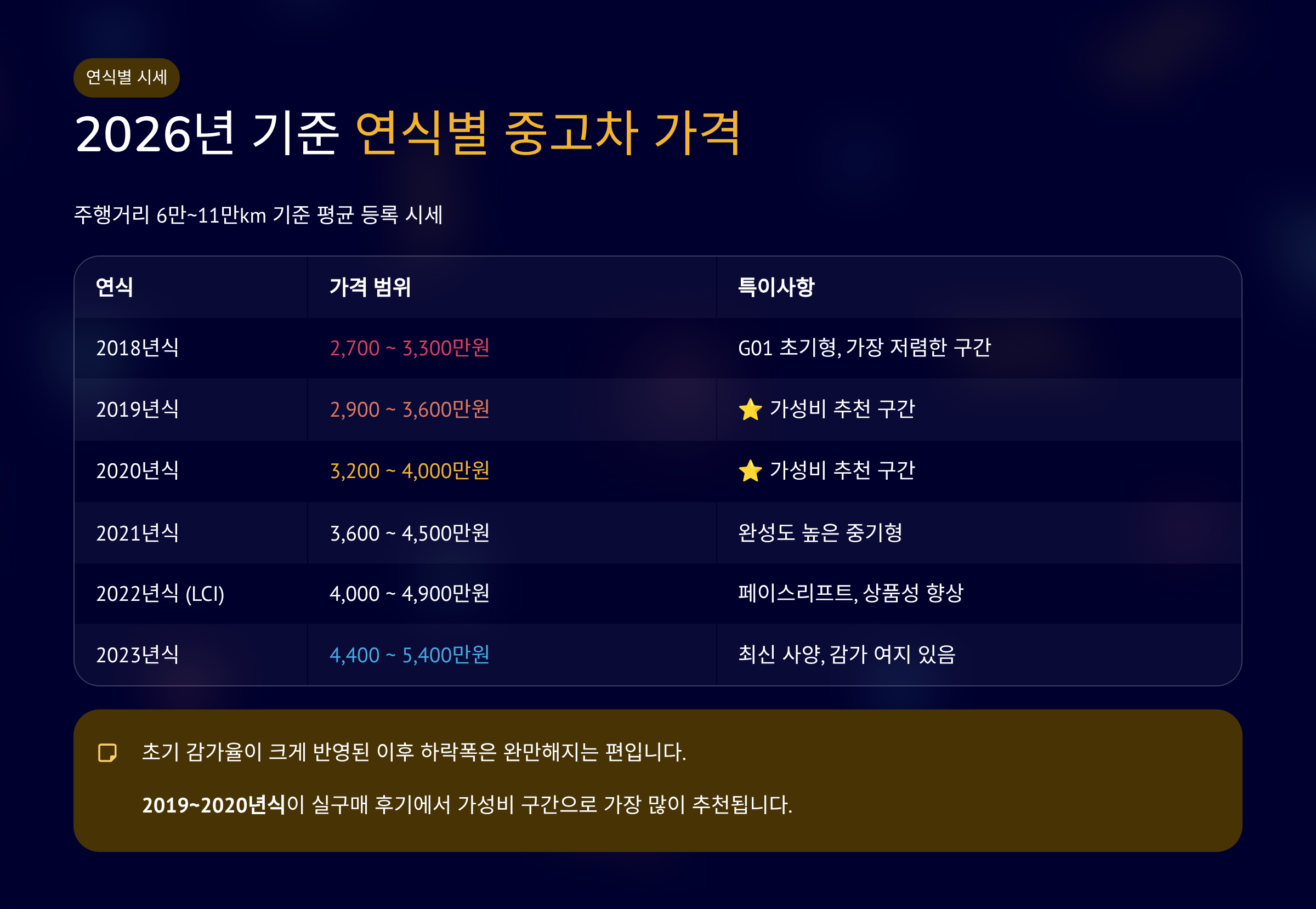 - 2018년식 (G01 초기): 2,700 ~ 3,300만원