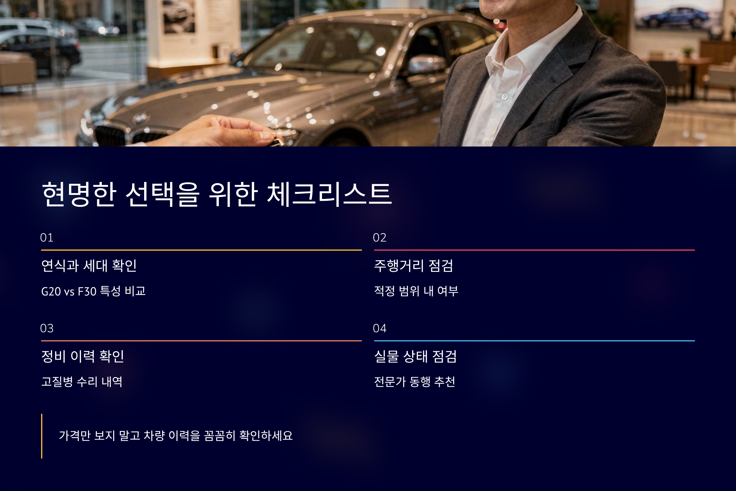 F30 후기형과 G20이 현재 주력 매물입니다.