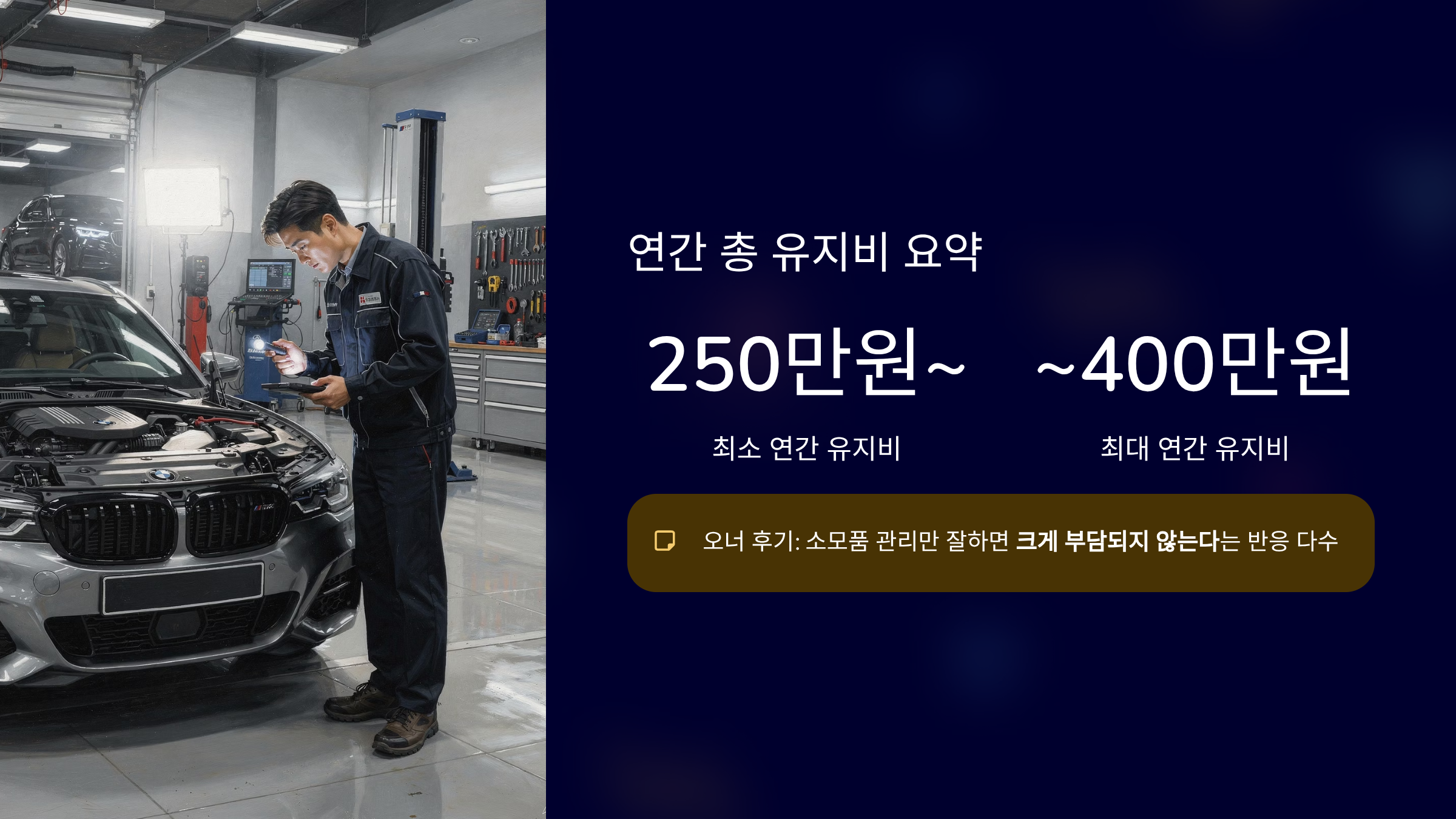 연간 유지비는 평균 250만~400만원 정도로 봅니다.