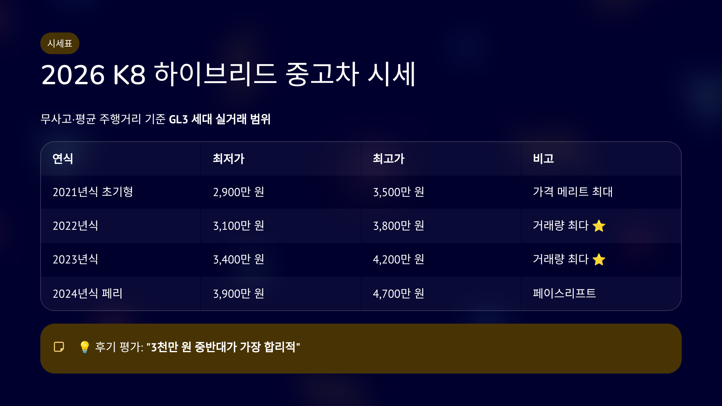 2026 K8 하이브리드 중고차 가격 시세표