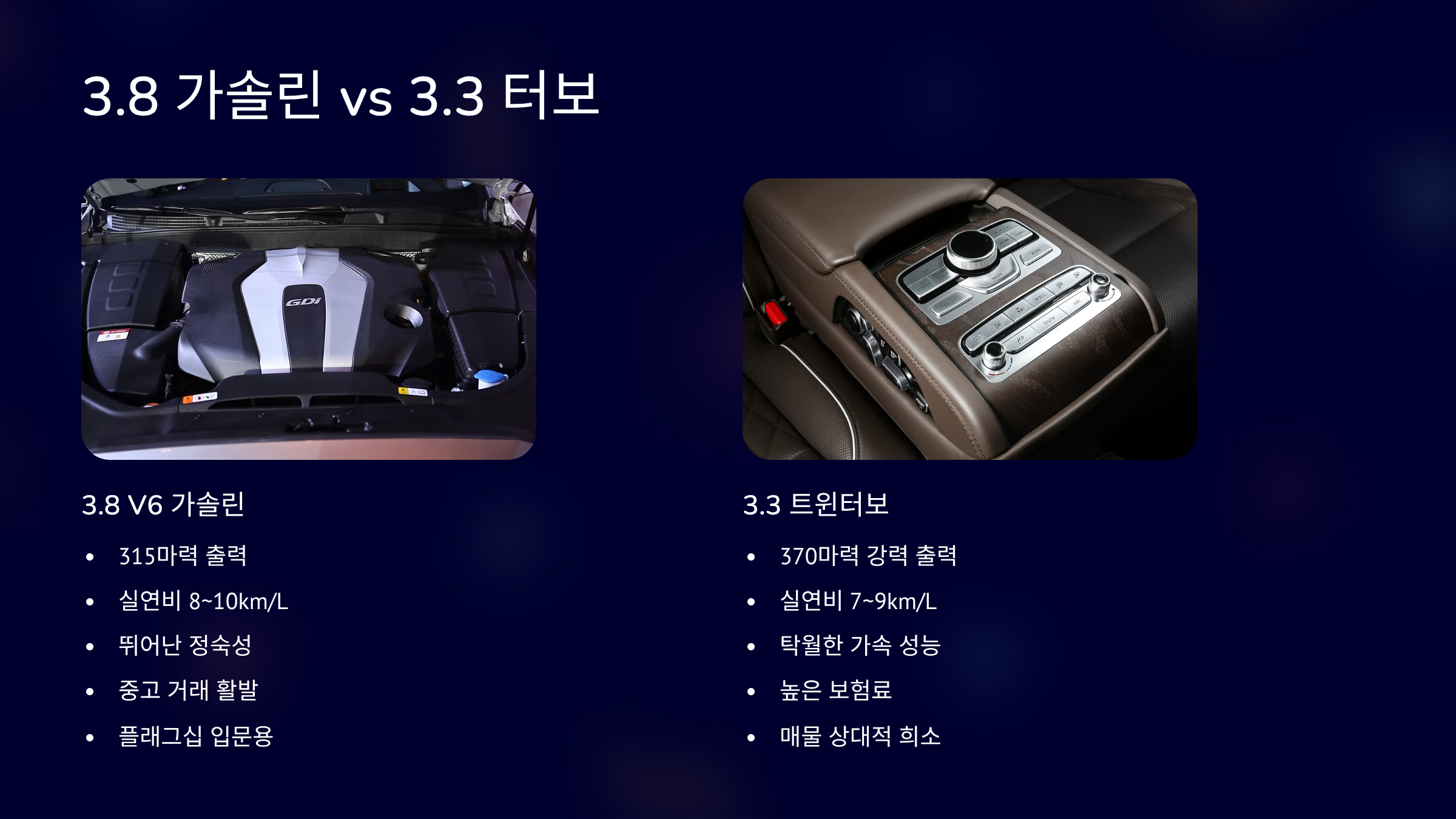 - 2018년식 3.8 가솔린 : 2,700만 ~ 3,200만원