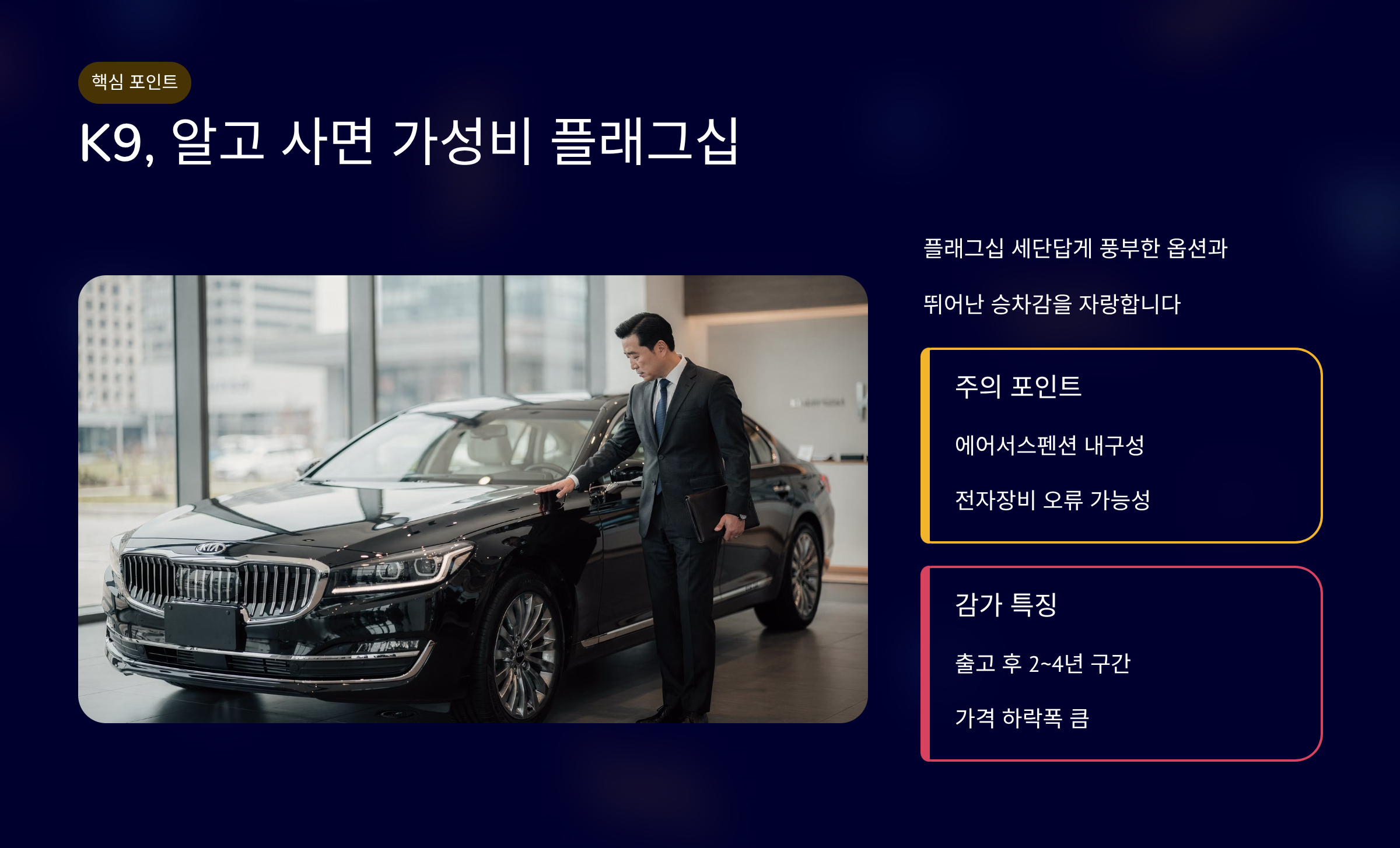 잘 고르면 가성비 높은 플래그십 세단이 됩니다.