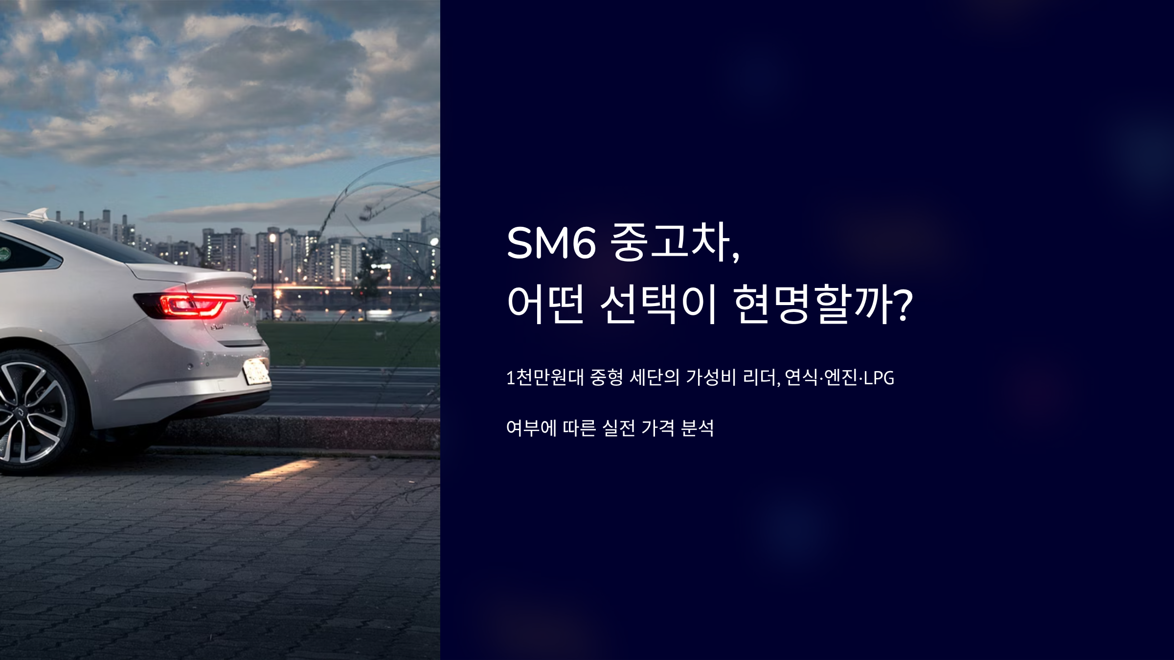 1천만원대로 중형 세단을 찾다 보면 결국 SM6를 보게 됩니다. 그런데 막상 시세를 확인해 보면 연식에 따라 가격 차이가 꽤 큽니다. 어떤 매물은 800만 원대이고, 어떤 차량은 1,900만 원에 형성되어 있습니다. 왜 이런 차이가 나는지 궁금하셨을 겁니다. 2026년 현재는 연식, 엔진, LPG 여부에 따라 시세 흐름이 분명합니다. 지금부터 종류별 연식, 연비, 가격 수치와 실제 후기까지 구체적으로 정리해 드리겠습니다.