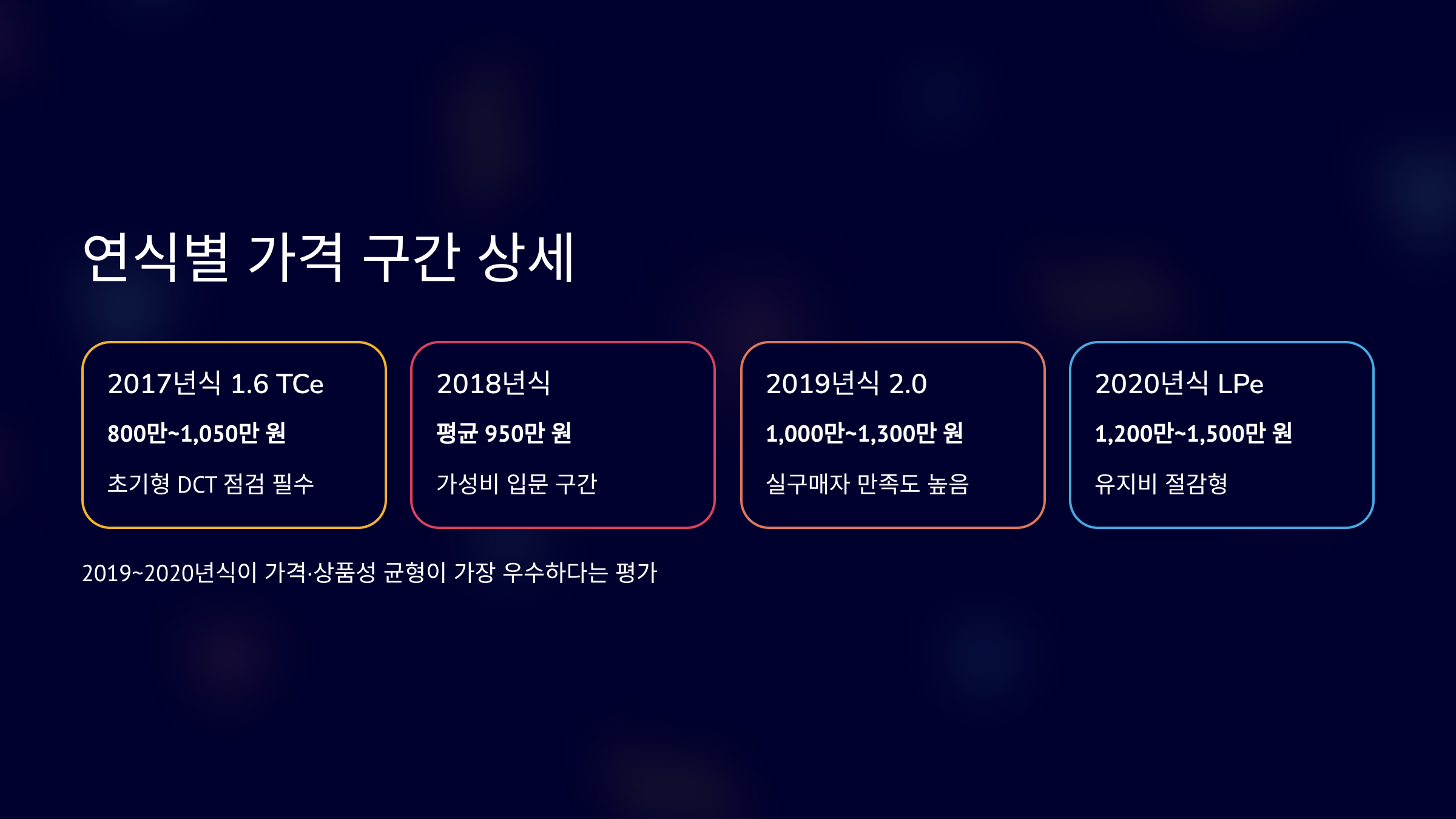 Q. 추천 연식은 언제인가요? A. 2020년 이후 더뉴가 안정적입니다.